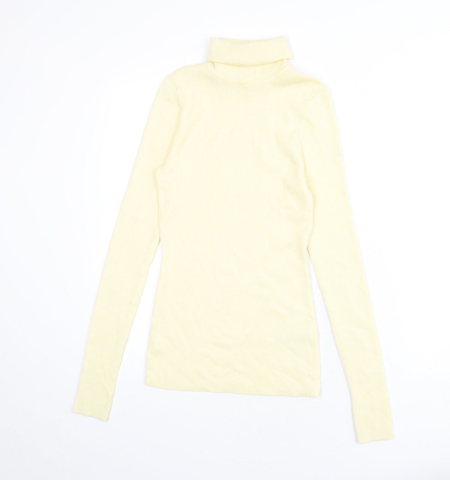 Womens Yellow Roll Neck Wool Pullover Jumper Size M