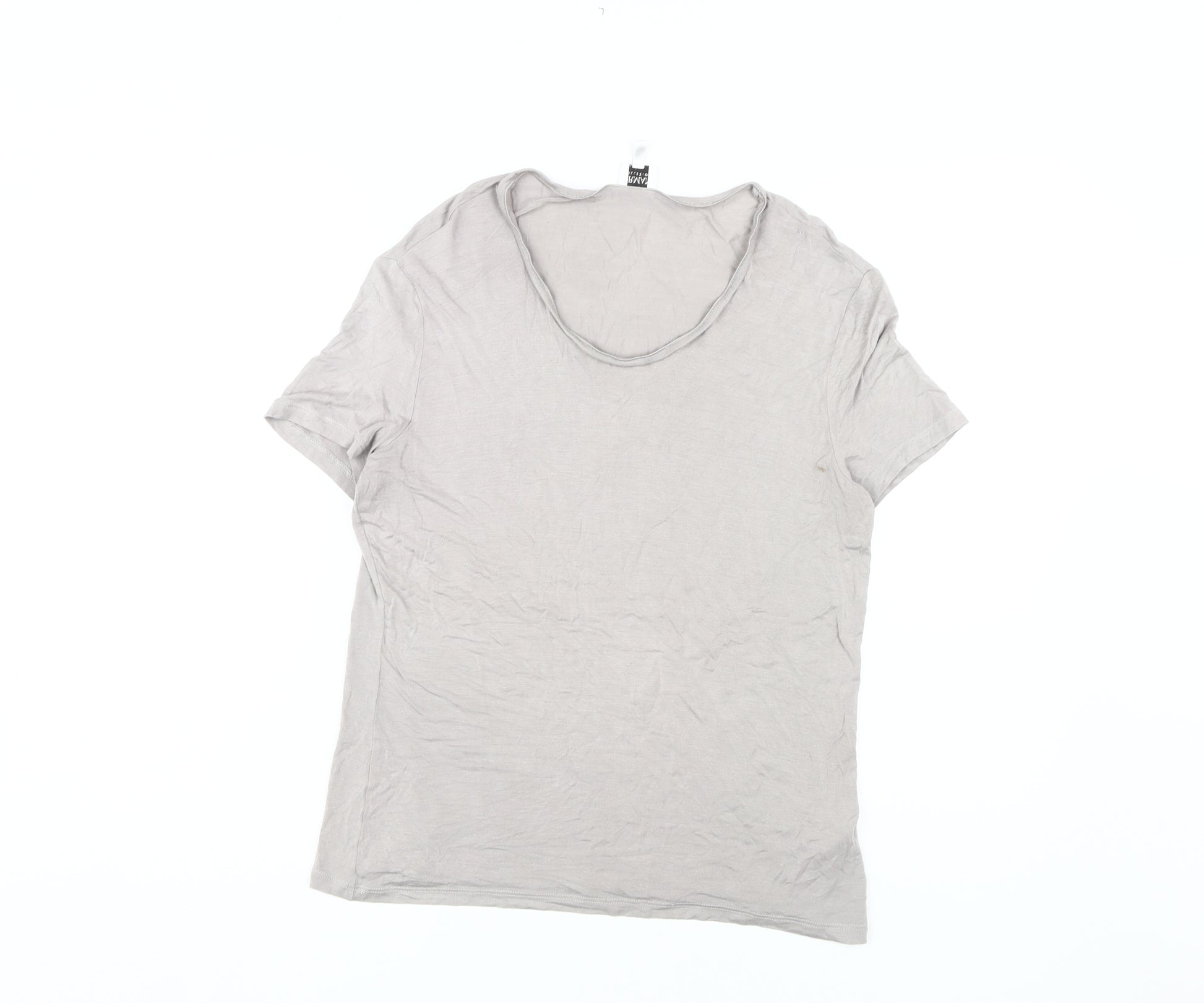 Elevate your everyday wardrobe with this Armani Collezioni T-shirt, perfectly suited for women who appreciate style and comfort. Crafted in a sophisticated shade of grey, this classic T-shirt epitomises understated elegance. The round neck and short sleeves create a timeless silhouette, while the regular fit ensures a comfortable wear for casual occasions. Made from a blend of viscose and elastane, the fabric drapes beautifully and offers a slight stretch to maintain its shape. This tee is ideal for Spring and Summer, allowing breathability and ease. Designed for effortless style, it's a versatile piece that can be dressed up or down. Whether paired with jeans for a laid-back look or a jacket for a more refined ensemble, this Armani T-shirt will soon become a staple in your wardrobe. Given its very good condition with only some light wrinkling, it promises many more wears to come. Don't miss out on adding this essential to your collection at an unbeatable price.