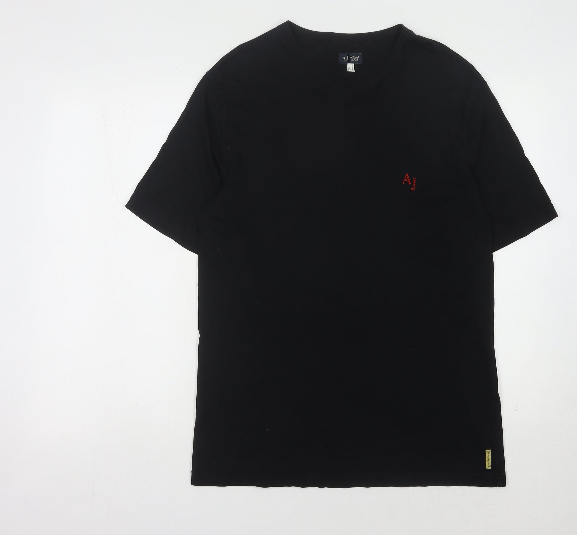 Experience the ultimate in style and comfort with this Armani Jeans Men's T-Shirt. Crafted from 100% pure cotton, this black V-neck tee promises a soft and breathable fit that's perfect for any occasion. Its sharp yet minimal design, highlighted by the iconic Armani Jeans logo accent, makes it a versatile staple for both casual and smart-casual settings. Suitable for all seasons, this T-shirt is machine washable for easy care, ensuring you stay effortlessly stylish throughout the year. Its solid black pattern offers endless pairing possibilities, whether with jeans for a laid-back weekend look or under a blazer for a more polished appearance. Available in a regular size L, this T-shirt provides a standard fit that's ideal for everyday wear. Elevate your wardrobe with a piece that's as functional as it is fashionable, reflecting the timeless elegance of the Armani brand. Perfect for those who value both quality and aesthetic, this tee is a must-have addition to any modern wardrobe. Don't miss the opportunity to own a genuine, brand new Armani Jeans T-shirt, poised to become a favourite go-to item in your collection.