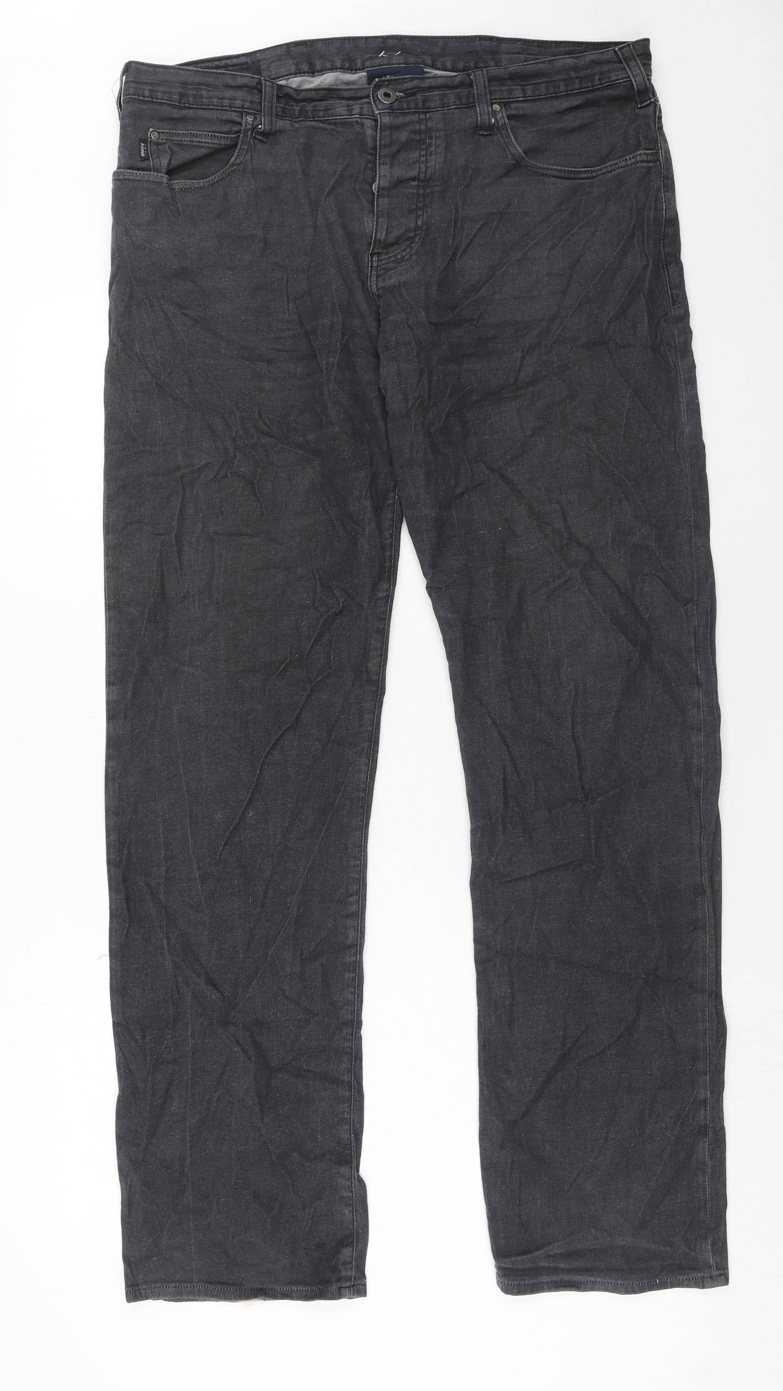 Mens Grey Cotton Straight Jeans Size 36 in L34 in Regular Button