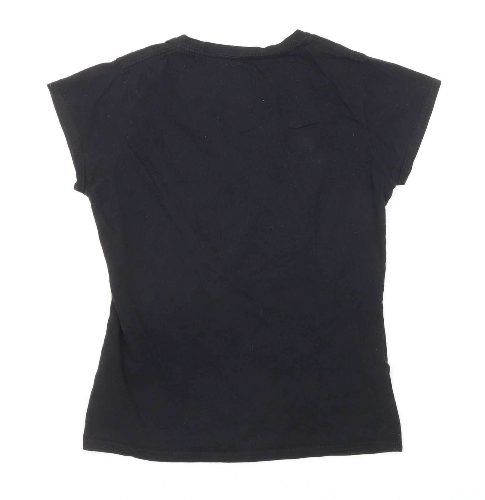 Womens Black Polyester Basic T-Shirt Size 8 Round Neck