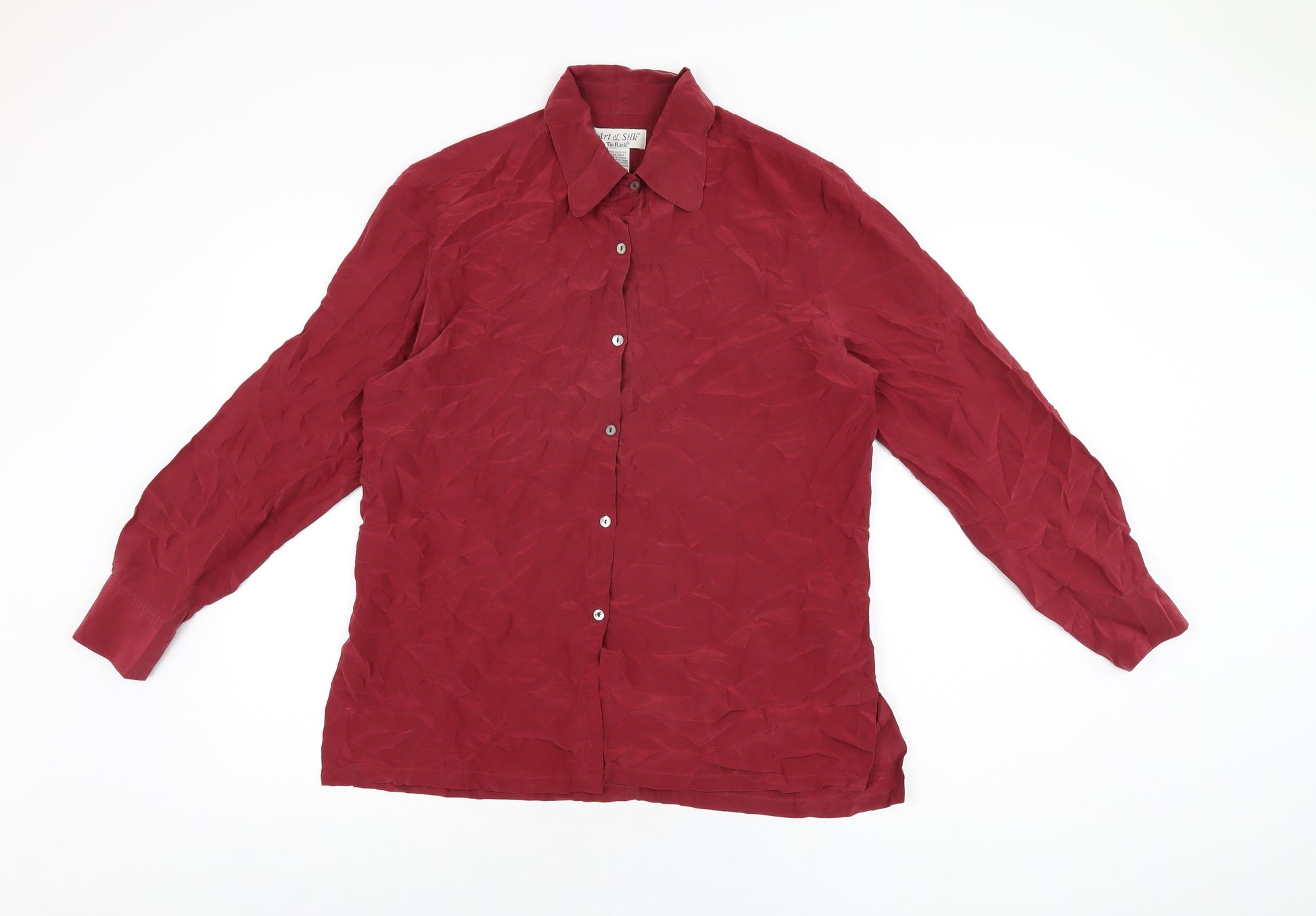 Womens Red Silk Basic Button-Up Size M Collared
