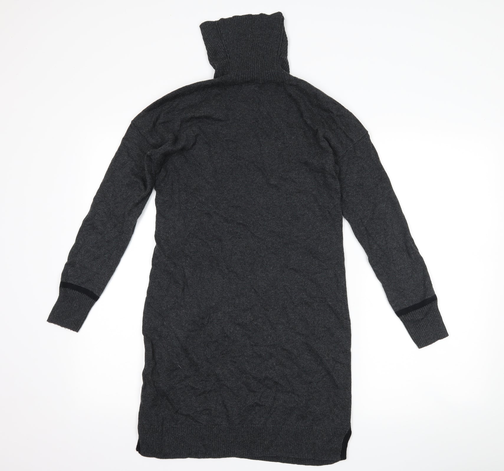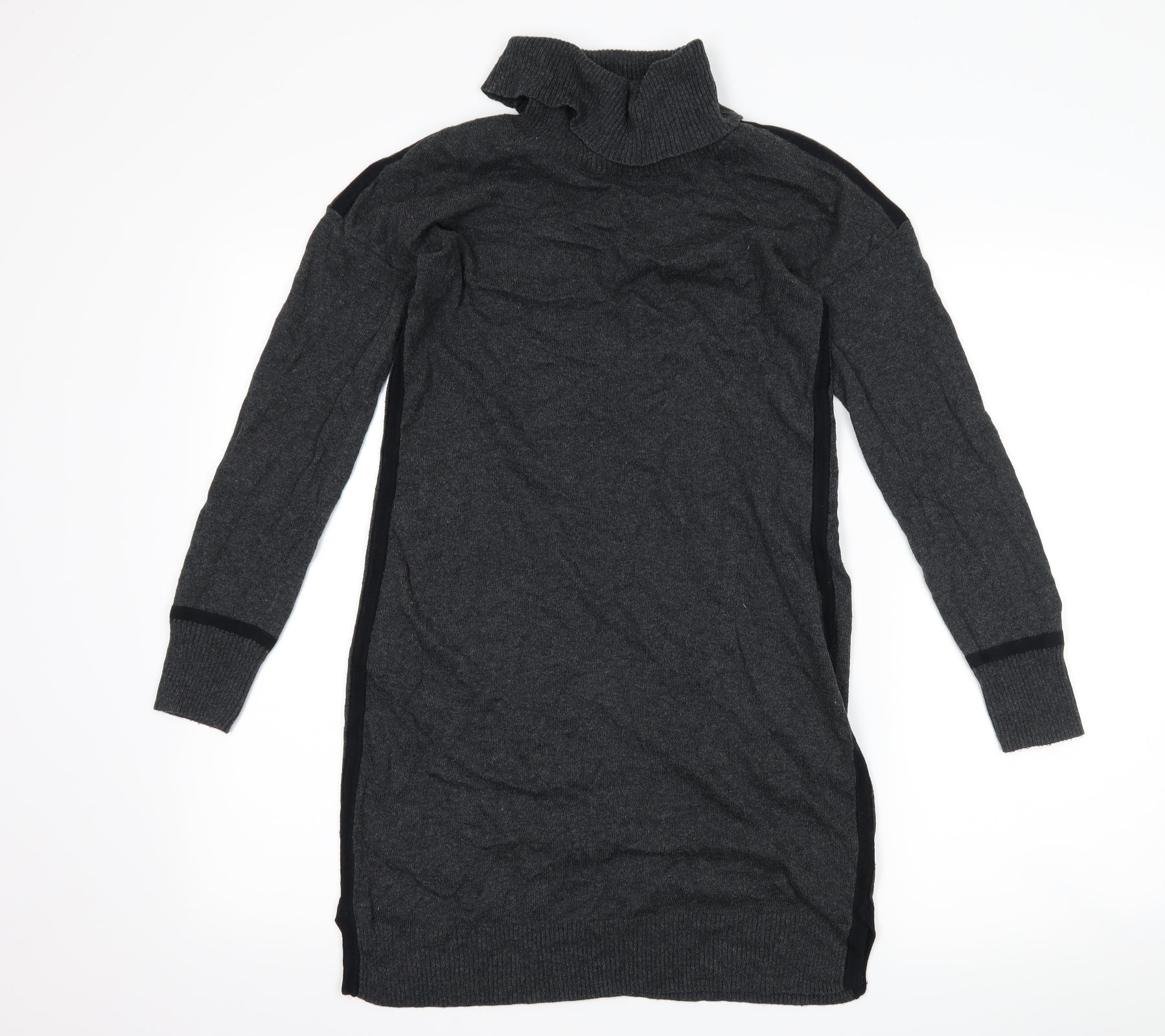Quiz Womens Grey Acrylic Jumper Dress Size S Mock Neck Pullover - Ballooon sleeve