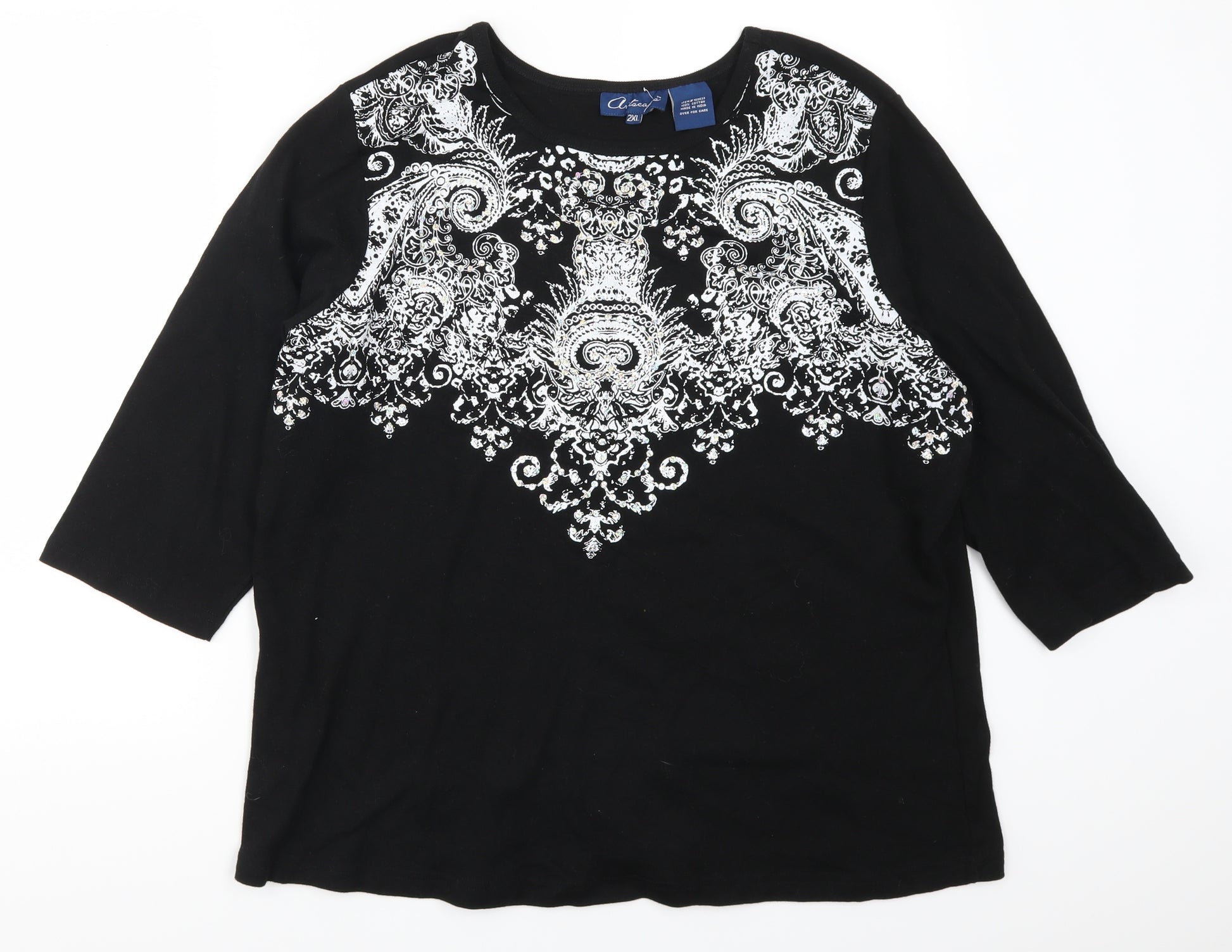 Womens Black Geometric Pullover Jumper Size 2XL
