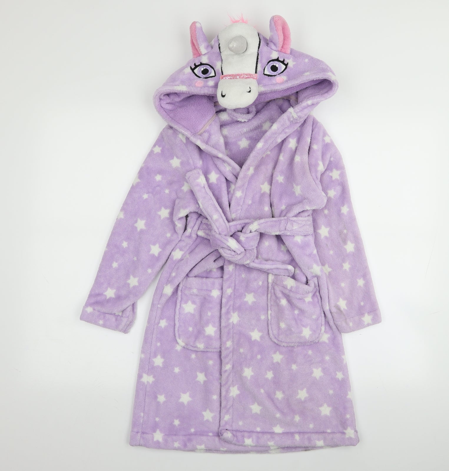 Girls Purple Solid Top Robe Size 8-9 Years - star detail