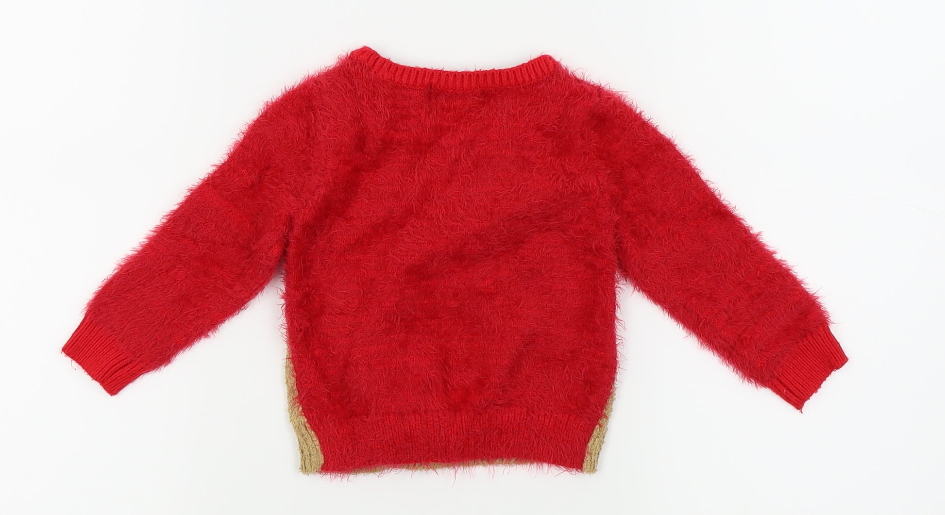 Girls Red Pullover Jumper Size 12-18 Months - Christmas Jumper
