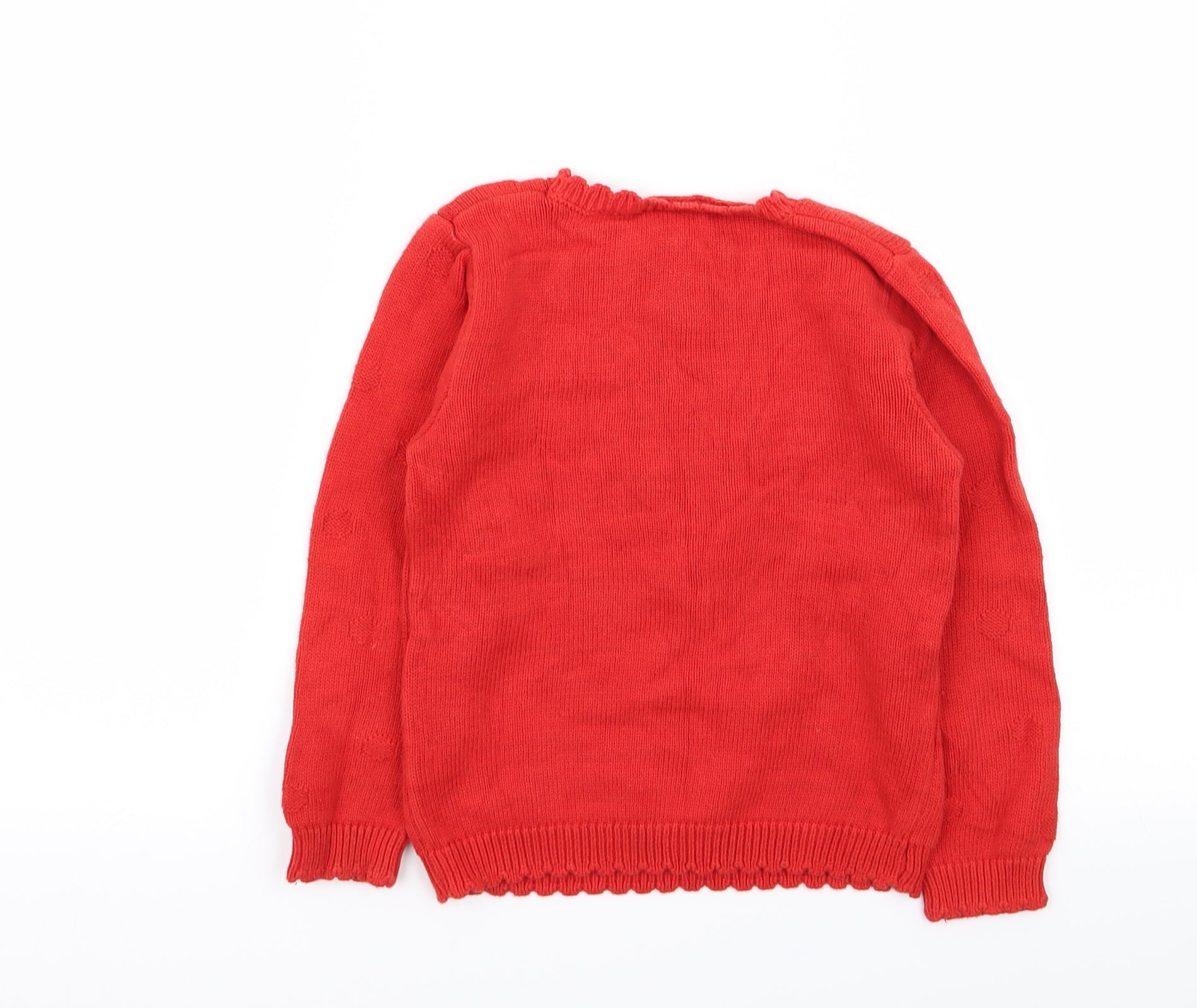 FatFace Girls Red Giraffe Jumper 5-6 Years Cotton Blend Crew Neck