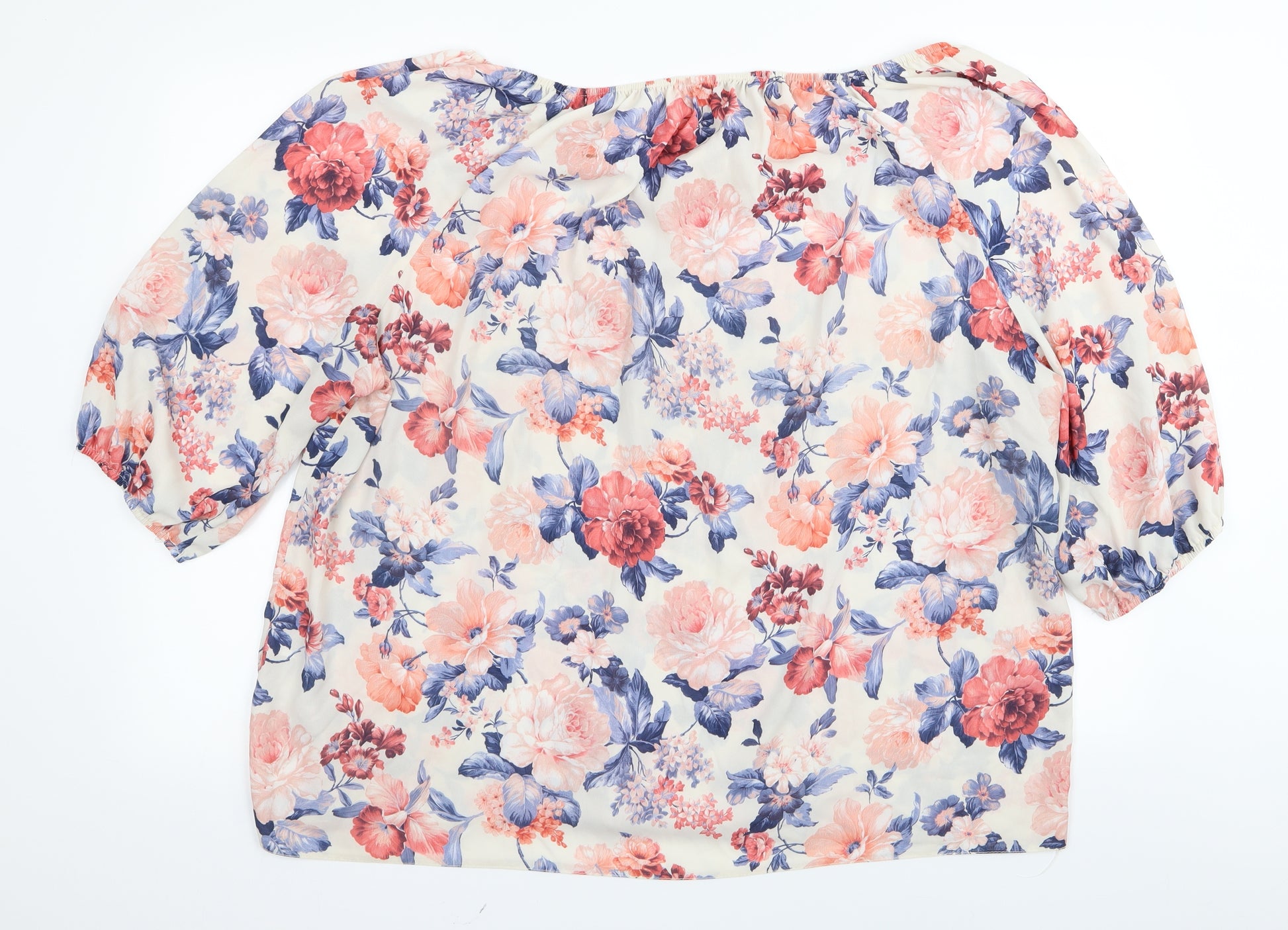 Regular price$18.56£1856Regular priceUnit price / perSale price $18.56 USDSOON Womens Beige Floral 3/4 Sleeve Scoop Neck T-Shirt Size 22