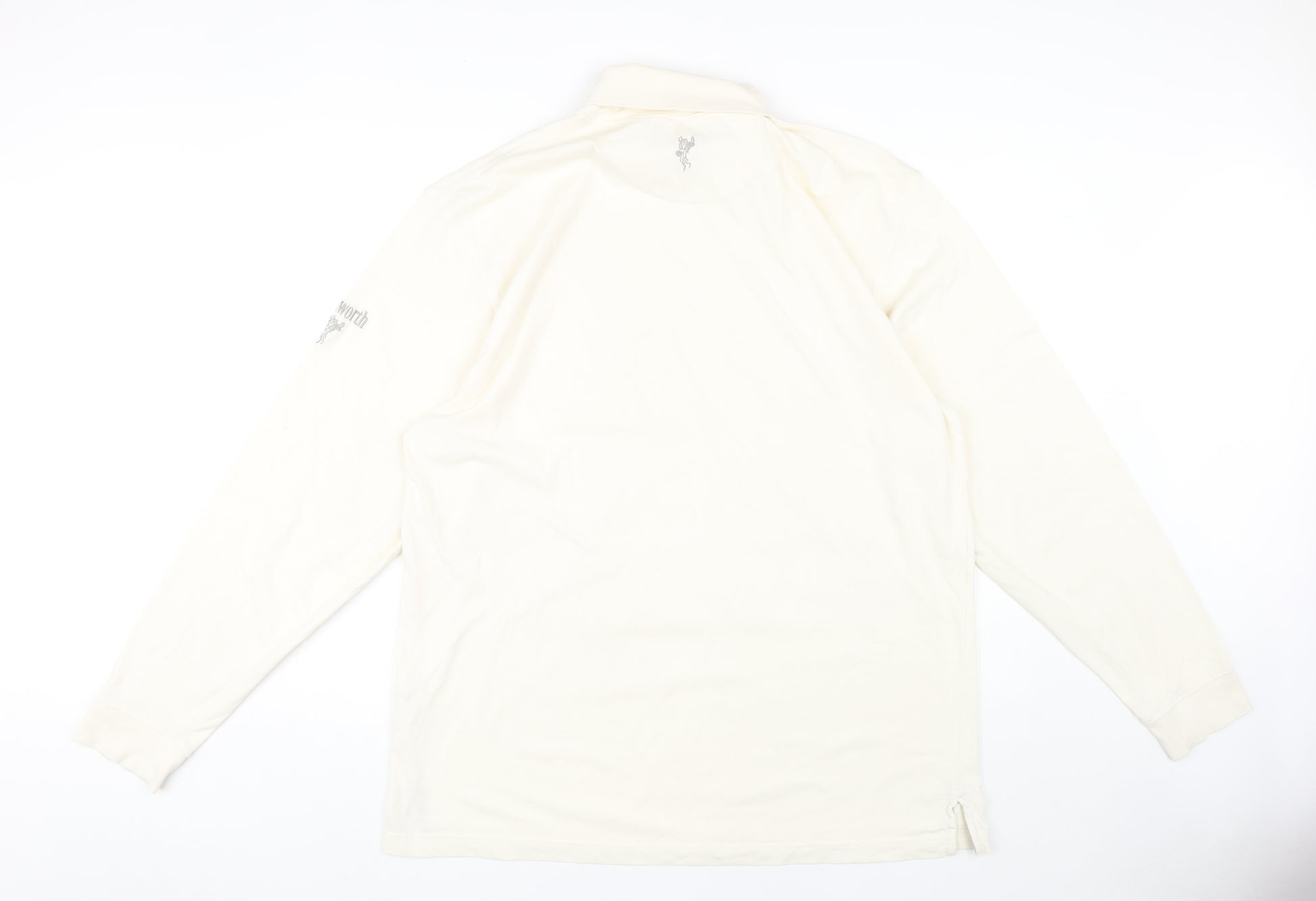Enhance your casual wardrobe with this Ashworth Men's Long Sleeve T-Shirt in a refreshing ivory shade. Made from 100% cotton with EZ-TECH technology, this shirt offers premium comfort and breathability throughout the day. The high neckline adds a touch of sophistication, while the long sleeves keep you warm during cooler days. Whether you're stepping out for a casual meet or lounging at home, this top assures versatility and style. Emblazoned with the Ashworth logo, it exudes understated elegance. Ideal for those who appreciate timeless, quality craftsmanship. The solid pattern ensures a clean, polished look that pairs easily with any garment in your closet. Machine washable for easy care, this shirt supports an active lifestyle without compromising on aesthetics. A must-have staple that complements all seasons, it provides effortless style with a classic touch.