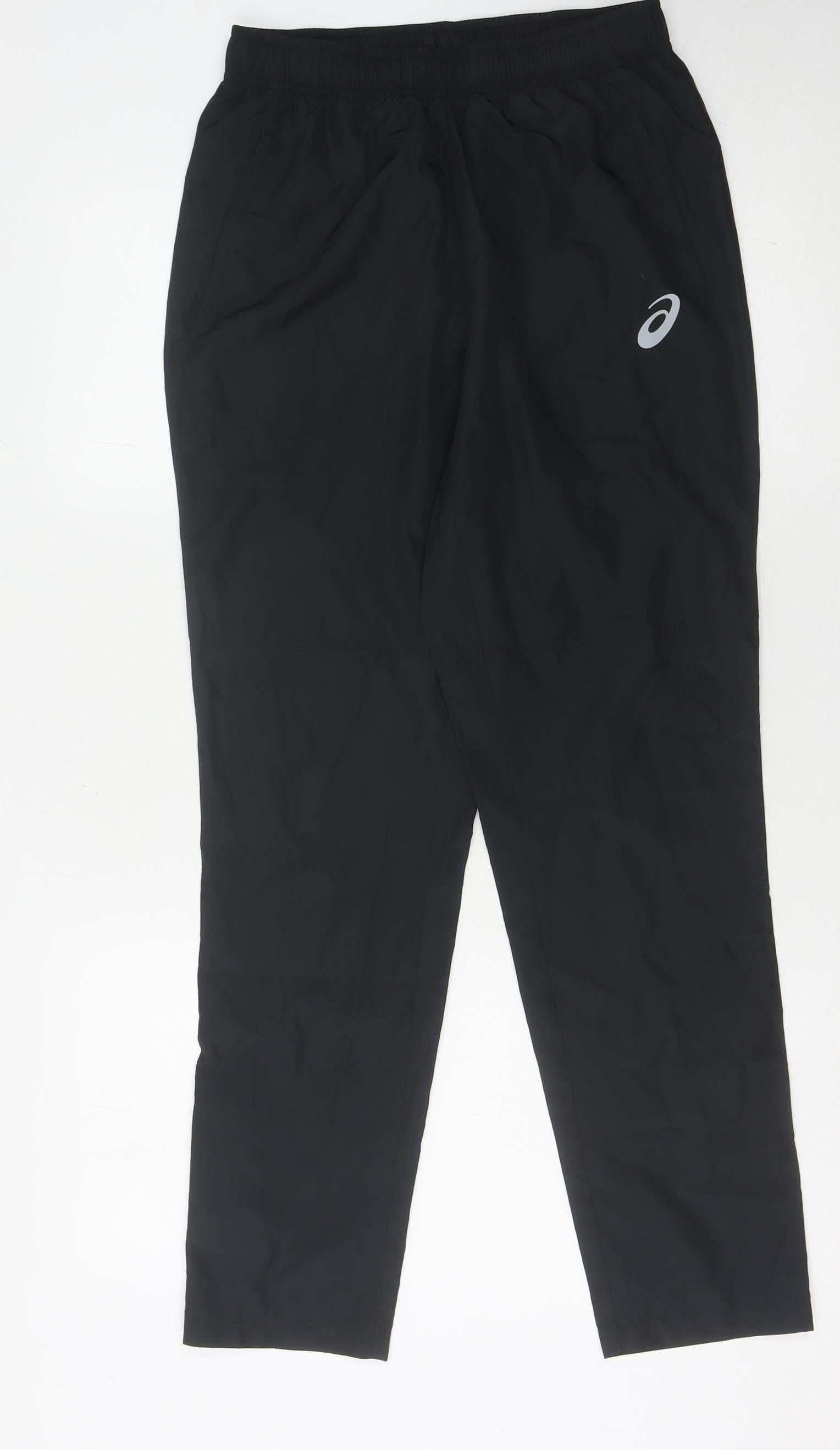 Discover high-performance comfort with these Asics women's running trousers, tailored for those who seek both style and functionality. Crafted from 100% recycled polyester, these black trousers are a sustainable choice that ensures durability and resilience, perfect for running and jogging activities. The elastic waistband provides a snug fit, allowing unrestricted movement while enhancing your athletic silhouette. Featuring a straight leg style, these trousers offer a classic fit suitable for various workout regimens. Engineered for activewear, their no-pattern design supports a sleek look while complimenting your existing athletic apparel. Easy to care for with machine washable fabric, maintenance becomes a breeze, ensuring these trousers remain a key element in your fitness wardrobe. Although previously owned, these trousers remain in excellent condition with no visible defects, offering like-new quality great for everyday workouts or casual sports settings. Embrace your active lifestyle with confidence in these essential Asics running trousers.