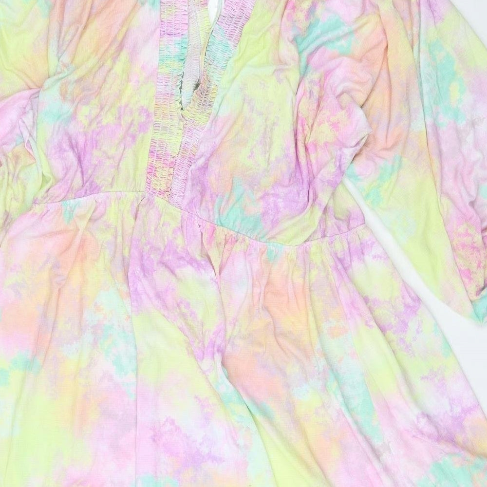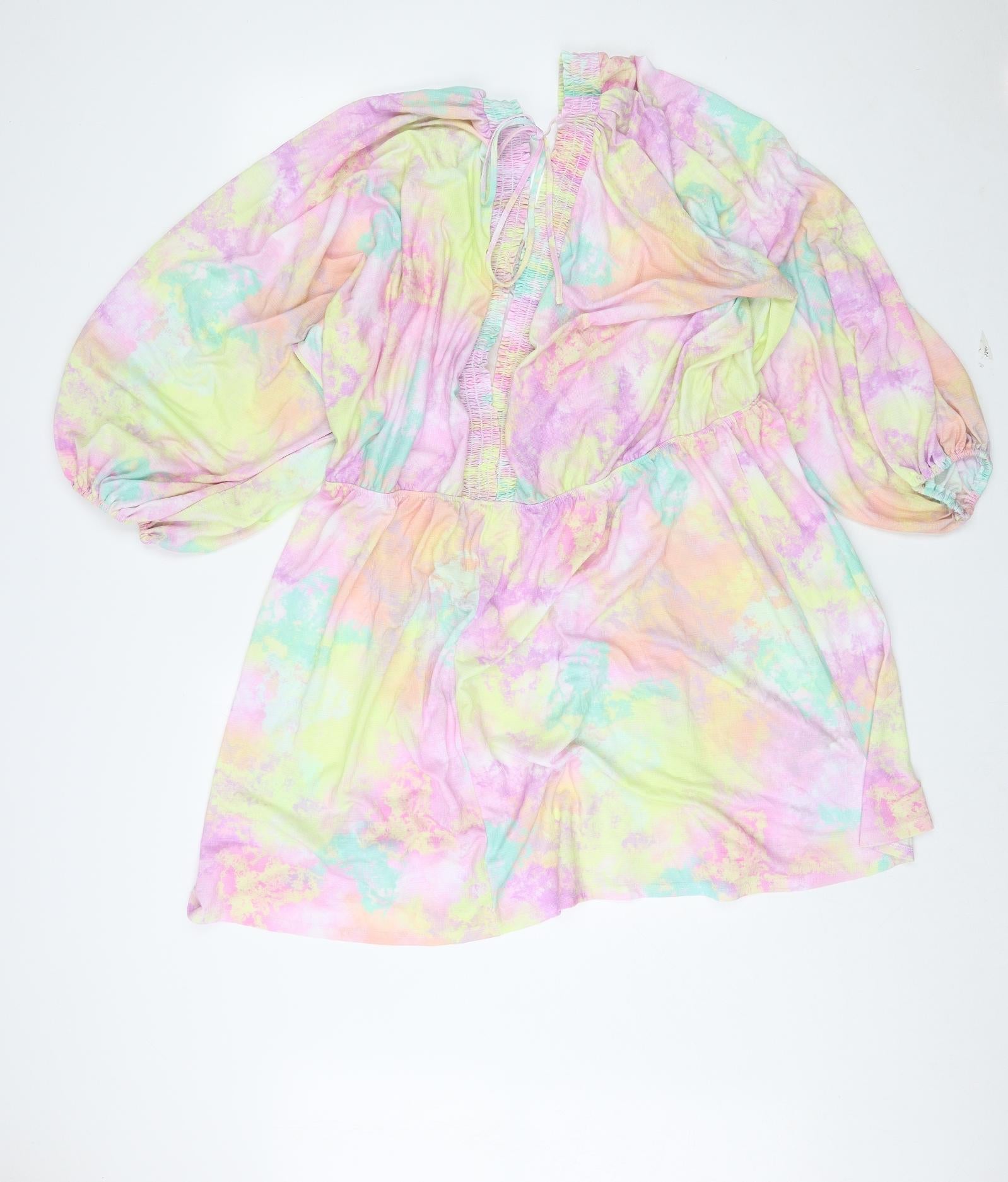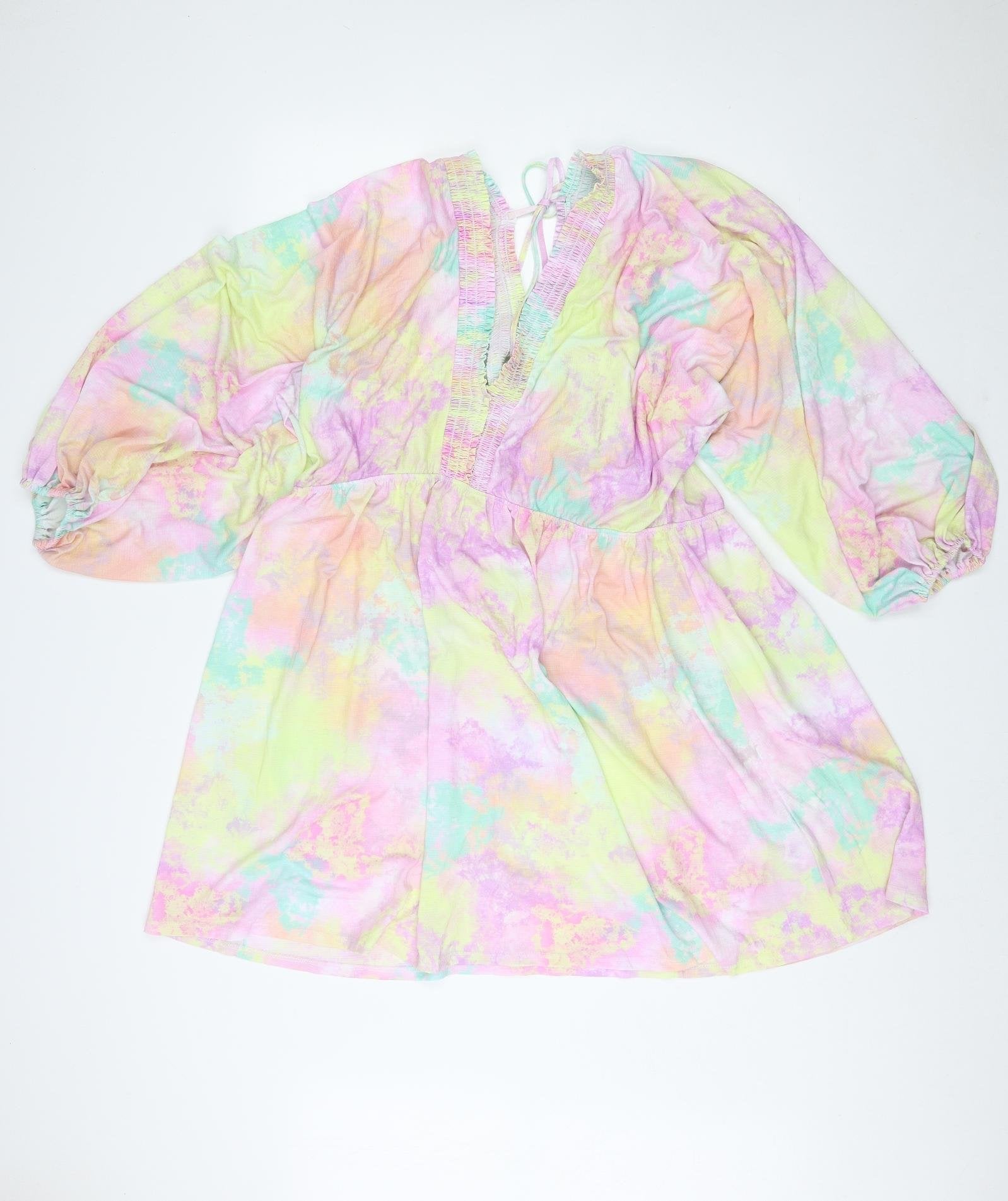 Womens Multicoloured Tie Dye Polyester Skater Dress Size 22 V-Neck Pullover