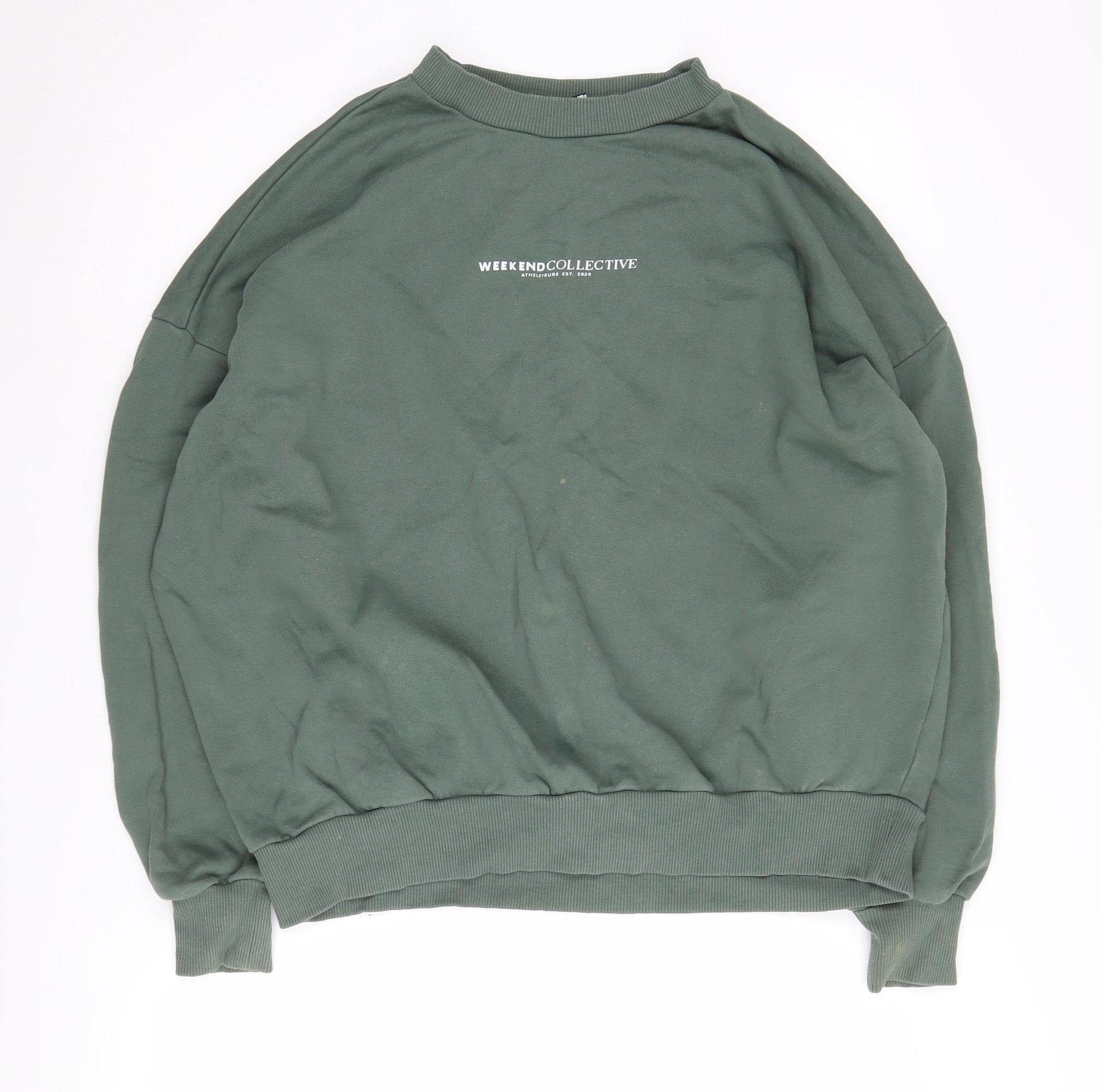 Discover comfort and style with this ASOS DESIGN women's pullover sweatshirt in a versatile green shade. Perfectly crafted for casual wear, this stylish sweatshirt features a relaxed fit, ensuring you stay comfortable throughout the day. The sweatshirt is designed with a crew neckline and long sleeves, making it a great addition for all seasons. Its fleece fabric type combined with the material blend of 98% cotton and 2% elastane offers a soft and stretchy feel, ensuring easy movement whether you’re lounging at home or out with friends. The sweatshirt is adorned with a subtle graphic print logo accent on both the front and back, adding a touch of modern flair to its overall look. Ideal for casual occasions, the regular fit ensures it complements various body types effortlessly. Crafted to be machine washable, this piece emphasizes ease and practicality for fuss-free garment care. Though rated in very good condition, please note the presence of slight blemishes on the fabric, adding a unique character to this piece. As a stylish staple in your wardrobe, it pairs seamlessly with your favorite jeans or leggings. Get ready to make this comfortable yet chic sweatshirt your go-to choice for laid-back outings or relaxed indoor days. Don't miss out on securing this invaluable wardrobe addition at a highly competitive price. Upgrade your casual wear collection today and experience the perfect blend of quality and style.