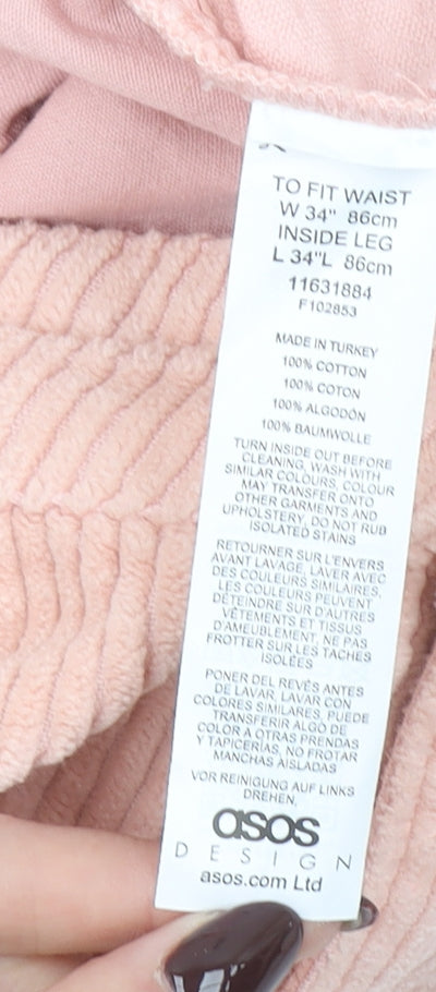 Bring effortless style and comfort to your everyday wardrobe with these ASOS DESIGN men’s pink corduroy chino trousers. Crafted from 100% cotton, they offer a soft, breathable texture that feels great against the skin while providing natural stretch for a comfortable fit. The rich corduroy fabric gives these trousers a distinctive, tactile look ideal for cooler months, making them both versatile and stylish. Designed in a flattering regular fit, these chinos complement a wide range of body shapes and easily pair with shirts, jumpers or casual tees for a laid-back, refined appearance. The five-pocket design adds practicality, ensuring you have plenty of storage for essentials, while the button and zip fastening maintains a classic, secure closure. The mid-rise waist provides comfortable wear all day, while the straight leg cut offers a timeless silhouette suitable for multiple occasions. Perfect for casual days out, relaxed workplaces or evenings with friends, the peachy-pink tone brings a fresh modern twist to a wardrobe staple. Machine washable for ease of care, these trousers are a low-maintenance yet high-style option you’ll reach for again and again. Whether paired with boots or trainers, these ASOS DESIGN chinos deliver the perfect blend of modern design and traditional craftsmanship. This pair is in very good condition with minimal signs of wear, and they retain their shape and structure beautifully, making them a great value addition to your collection. Ideal for Autumn and Winter seasons, they combine comfort, durability, and understated elegance, ensuring you’ll look sharp while staying comfortable throughout the day. A fantastic choice for anyone who appreciates quality menswear with a contemporary colour palette and a soft cord finish that adds texture to any outfit.