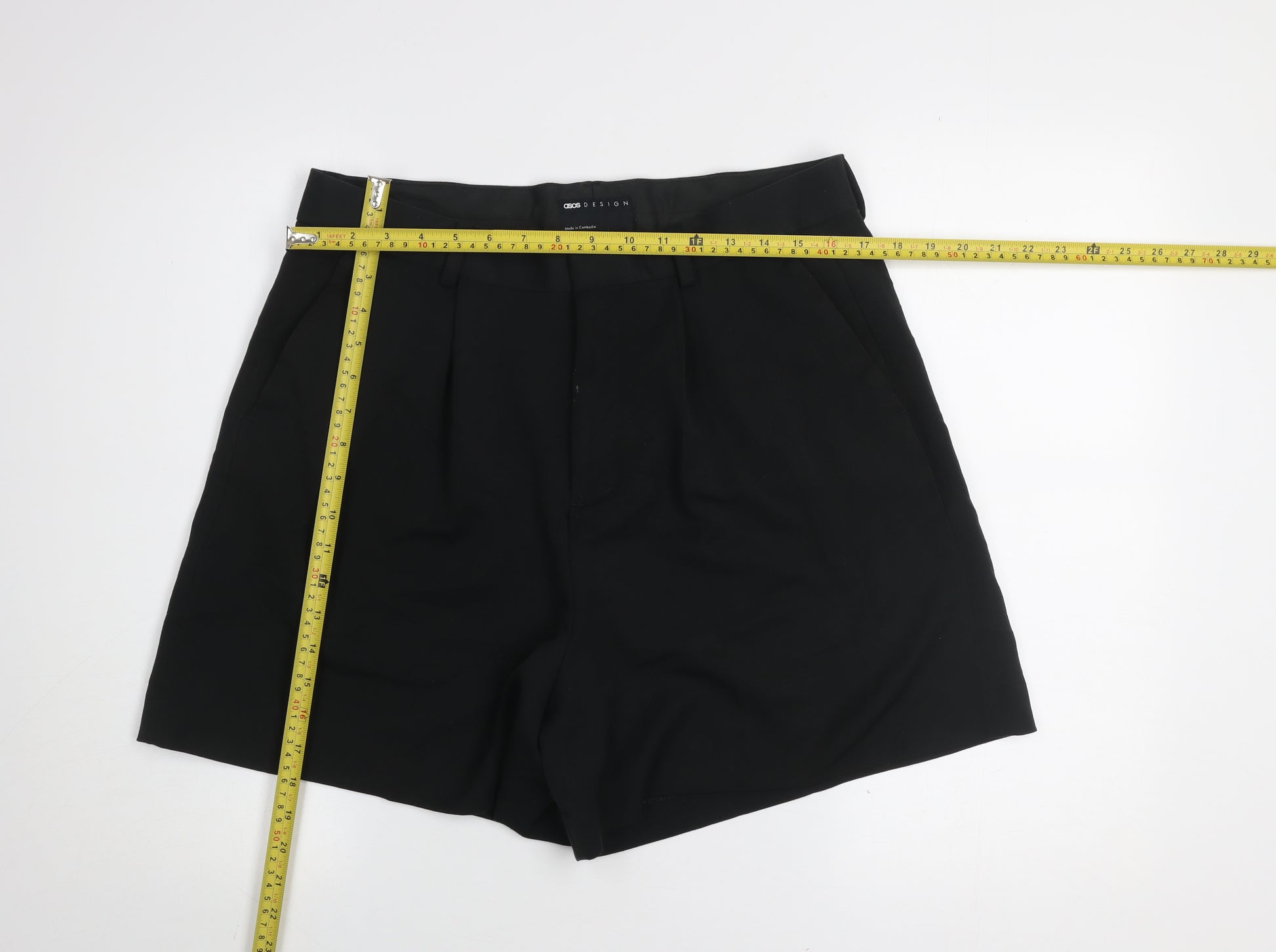 Step into sleek summer style with these ASOS DESIGN men's chino shorts in timeless black. Crafted for a refined yet relaxed look, these shorts pair effortlessly with shirts or t-shirts for any occasion, from sunny weekends to smart-casual outings. Designed in a regular fit with a mid-rise waist, they feature a pleated front for a touch of tailored sophistication. The waistband sits comfortably, offering structure without sacrificing mobility, while side slash pockets and discreet rear pockets enhance practicality without affecting the clean silhouette.Made from a soft, durable fabric blend of 75% polyester, 20% viscose, and 5% elastane, the shorts boast a lightweight, breathable construction that maintains comfort all day long. The subtle stretch in the material allows for better movement, making these shorts ideal for both warm-weather strolls and more polished daytime wear. Finished in a rich dark black, they hold their shape beautifully and coordinate easily with any colour palette.Whether teamed with loafers and a linen shirt for a holiday-ready look or with trainers and a relaxed tee for daily wear, these ASOS DESIGN Chino Shorts ensure you stay sharp without effort. Machine washable for easy care, they are as practical as they are stylish. The overall condition is excellent, showing minimal signs of wear and maintaining their structure impeccably.If you’re after a dependable addition to your wardrobe, these versatile black shorts balance smart tailoring with everyday comfort—perfect for summer, spring, and beyond. A staple piece that promises endless outfit combinations, they’re a must-have for the modern man seeking understated style and all-day comfort.