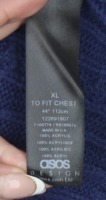 Add a stylish, contemporary edge to your wardrobe with this ASOS DESIGN men’s sleeveless cable‑knit vest. Crafted from soft 100% acrylic material, this versatile blue jumper feels lightweight yet comfortably warm, making it ideal for layering during autumn and winter seasons. The sleeveless design and subtle ribbed texture bring a timeless appeal that pairs seamlessly with shirts or t‑shirts for a smart‑casual look. The V‑neckline is accented with a light blue stripe detail, adding a sporty touch to this classic knit style. Its regular fit ensures a comfortable wear, while the ribbed hemline and neck trim provide a flattering silhouette that suits a range of body types. Made in the UK, this ASOS DESIGN piece offers dependable quality and unmistakable style, perfect for both laid‑back weekends and casual office days.In excellent pre‑owned condition with gentle signs of previous use, this vest shows no stains, pulls, or holes. It’s fully machine washable for easy care, retaining both colour and shape wash after wash. The combination of cable‑knit texture and minimalistic detailing makes it a wardrobe essential that never goes out of fashion.Pair it with chinos and loafers for a relaxed smart‑casual look, or layer over a crisp shirt for a polished, vintage‑inspired outfit. Whether worn layered or on its own, this blue sleeveless V‑neck jumper delivers both comfort and versatile style — a must‑have addition for any season’s wardrobe.