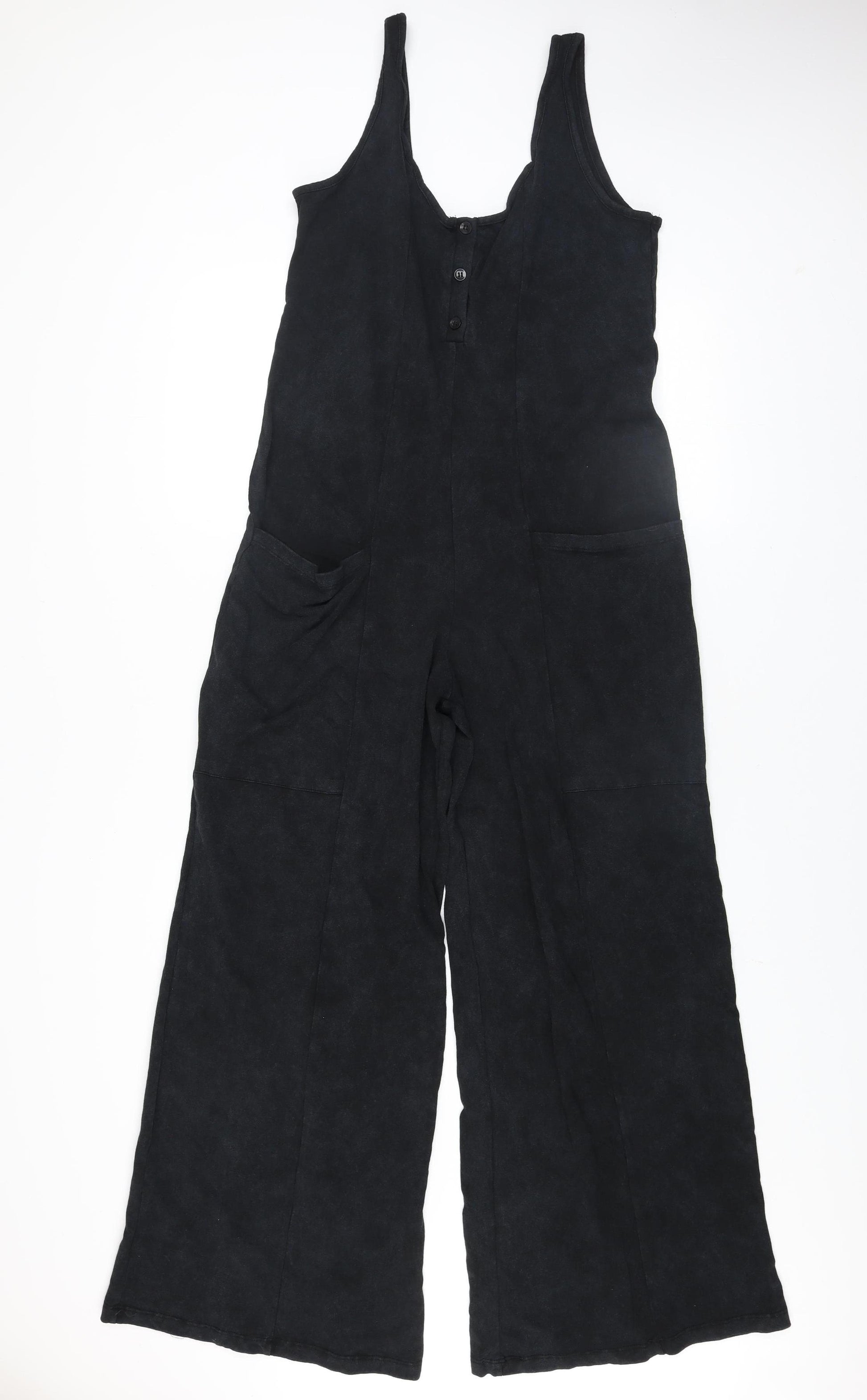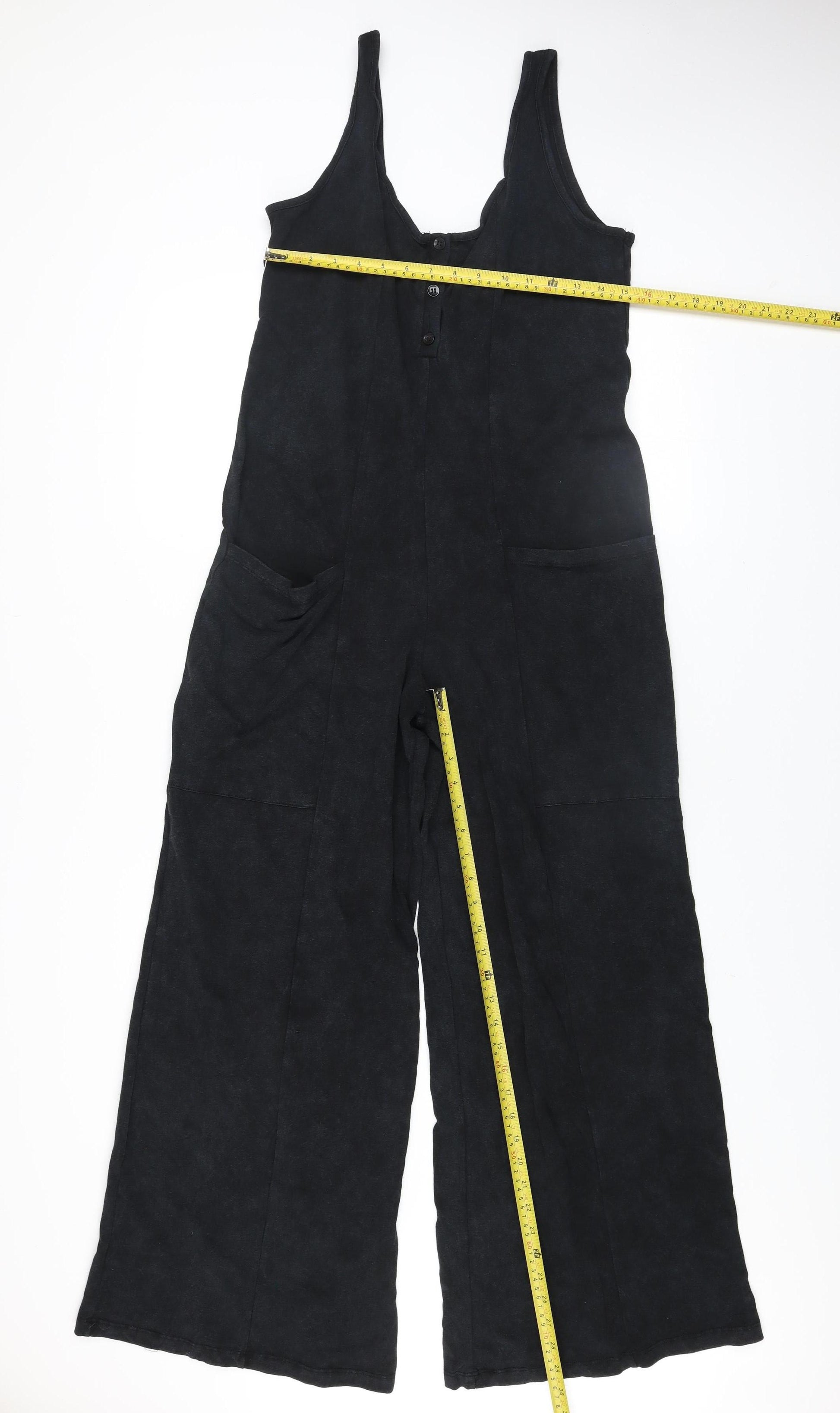 Women Black Cotton Sleeveless Wide-Leg Jumpsuit Size 12