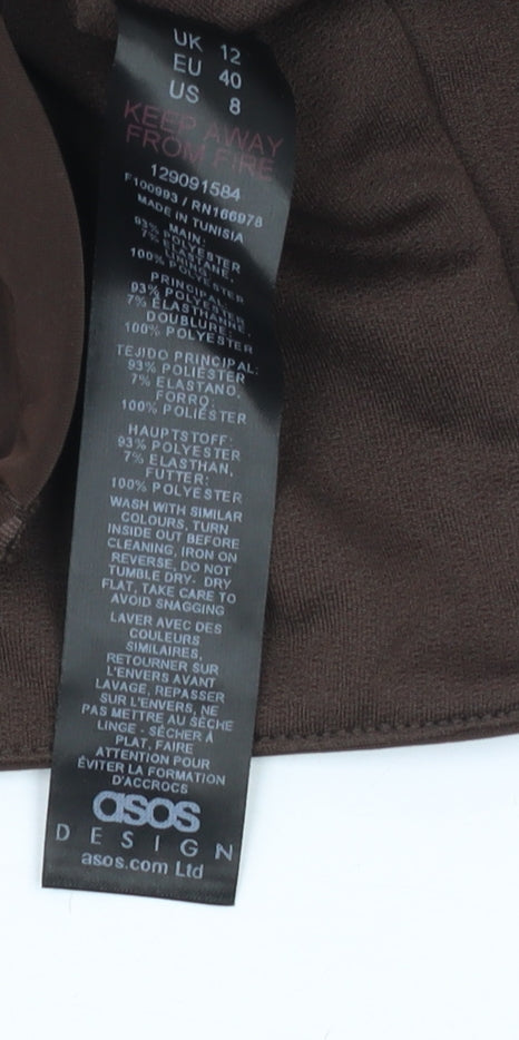 Elevate your wardrobe with this chic ASOS DESIGN strapless blouse, perfect for summer outings or casual occasions. Crafted from 100% polyester, this brown top offers a streamlined and sophisticated look. The woven fabric gives it a smooth feel, while the stylish wrap design adds an element of elegance. Designed to fit regularly in a UK size 12, it comfortably flatters your shape. The zip closure at the back ensures easy wear, making it a breeze to slip on and off. Whether you're dressing up for a casual gathering or looking to add a touch of class to your everyday attire, this blouse is a versatile addition to any collection. It’s machine washable, ensuring easy care and maintenance, and is in excellent condition with no visible signs of wear. Don't miss the opportunity to own this stunning piece that combines style and comfort effortlessly.