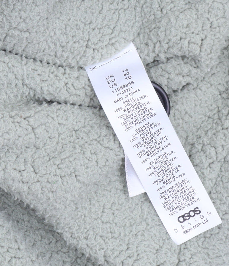 Stay effortlessly stylish and cosy this season with this women’s ASOS DESIGN hooded puffer jacket in a muted sage green tone. Designed in a timeless quilted pattern, this piece brings a perfect balance of practicality and modern design. Crafted from 100% polyester, the jacket’s outer shell offers durable protection while maintaining a lightweight feel, ideal for layering through colder months. The fully lined interior enhances warmth with its soft, plush polyester fabric, helping you stay comfortable whether you’re out on a brisk autumn walk or heading to work on a cold winter morning. The hood adds extra coverage when you need it, while the mid-length cut provides a flattering shape that suits a variety of outfits. Featuring a button front closure, this jacket stays true to a classic style with a clean silhouette and slightly relaxed fit that allows easy movement. The padded and quilted design ensures a snug, cosy feel without compromising on breathability or style. In excellent condition with barely any signs of wear, this versatile piece is perfect for daily casual wear, commuting, or weekend outings. Pair it with jeans and boots for a laid-back look, or layer over a turtleneck and trousers for a more elevated take. Combining ASOS DESIGN’s contemporary flair with everyday practicality, this jacket makes a perfect choice for anyone wanting a functional yet fashionable outerwear piece that transitions effortlessly from day to night.