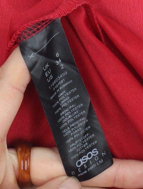 Elevate your wardrobe with this stunning ASOS DESIGN asymmetric dress in a striking red hue. Crafted from 100% polyester, this elegant piece is designed for women who appreciate both style and comfort. The dress features a modern asymmetric hemline, adding an element of chic sophistication that's perfect for various occasions. This sleeveless, strapless design allows you to accessorize with your favourite jewellery or a stylish bolero. While the smooth fabric ensures a flattering fit, the vibrant colour brings a touch of boldness to your ensemble. Ideal for parties, cocktails, or simply adding a splash of excitement to your everyday wear, this versatile dress adapts to any season. Despite lacking original sales tags, it's in excellent condition with only minor marks, making it a great choice for those seeking style without compromise. Stand out with this contemporary addition to your wardrobe, perfect for expressing your unique fashion sense.