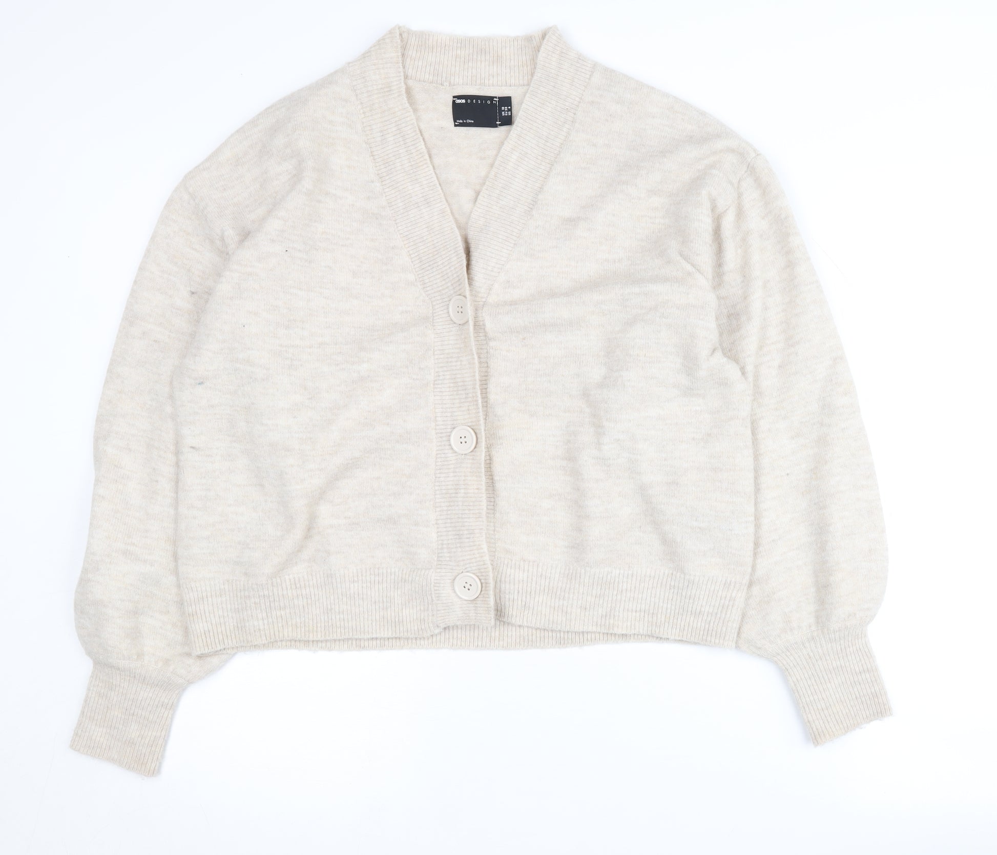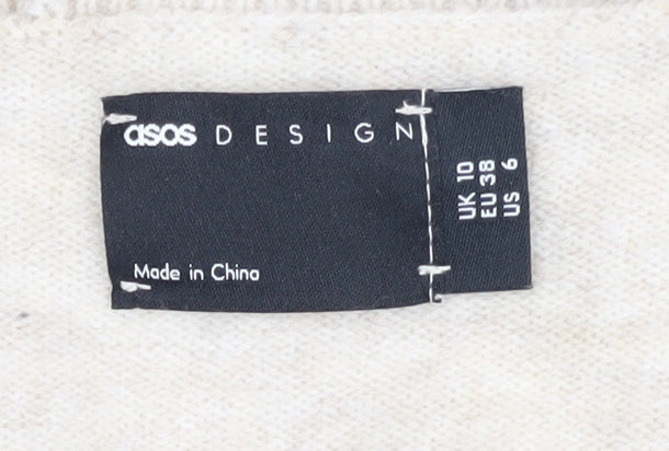 This ASOS DESIGN beige cardigan is a perfect blend of style and comfort, making it an elegant addition to your wardrobe. Crafted with a soft knit fabric and featuring a classic button-up style, this cardigan effortlessly combines fashion with functionality. Its neutral beige color ensures versatility, allowing you to pair it with a variety of outfits for different occasions. Whether you're dressing up for a casual day out or adding a layer to stay warm, this cardigan is equipped to meet your needs. The long sleeves provide ample coverage, while the regular fit accommodates a range of body types, ensuring you stay comfortable throughout the day. The item is constructed from 52% polyester, 45% acrylic, and 3% elastane, providing a soft touch with a hint of stretch for ease of movement. Despite slight signs of wear, the overall condition is excellent, evidencing its quality and durability. Suitable for women, it is available in UK size 10, promising a flattering fit for the average build. With a subtle button accent and plain pattern, this cardigan maintains a minimalist aesthetic, making it ideal for layering over tops and dresses alike. Don't miss the opportunity to add this versatile and stylish cardigan to your collection. Ideal for any season, its understated elegance is sure to make it a staple piece in your wardrobe.