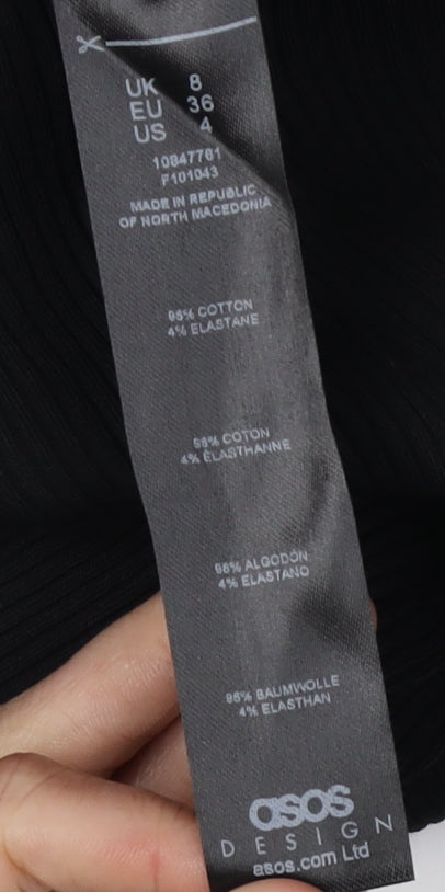 Elevate your wardrobe with this elegant ASOS Design Women's Black One Shoulder Midi Dress. Perfectly crafted with a flattering black shade that suits any occasion, this dress exudes class and sophistication. Designed with a contemporary one-shoulder neckline and an asymmetrical long sleeve, it adds a touch of modernity to a classic silhouette. The dress is made with a comfortable knit fabric, combining 96% cotton and 4% elastane to ensure a stretchy fit that hugs your curves beautifully. This dress is an excellent choice for a sleek and chic look. Its form-fitting design ensures you'll stand out, whether you're attending a formal event or a sophisticated dinner party. With no visible defects, it remains in excellent condition and is a stylish option for any fashion-forward woman. Embrace the minimalist pattern and let the simple yet striking design speak for itself. Ideal for cooler seasons or indoor events, it's a versatile piece that belongs in every fashionista's collection.