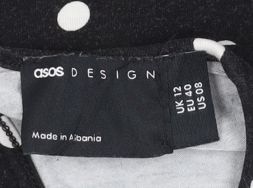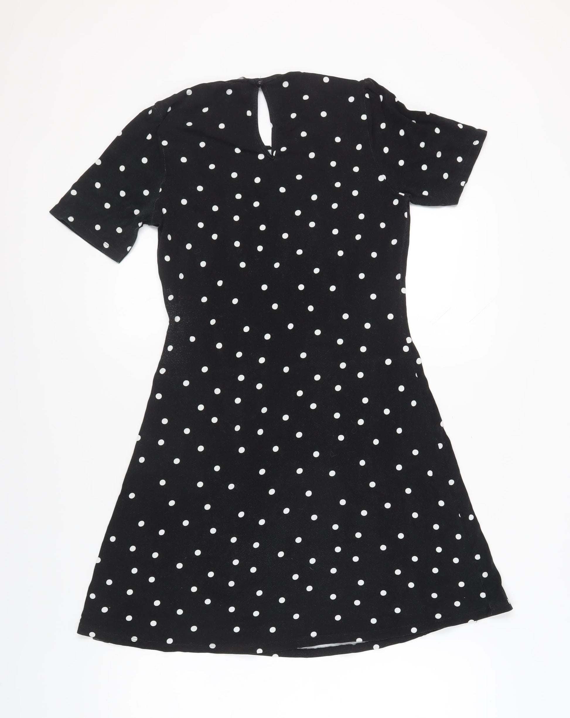 Marks and Spencer Womens Black Geometric Polyester Trapeze & Swing Size 12 Round Neck Zip