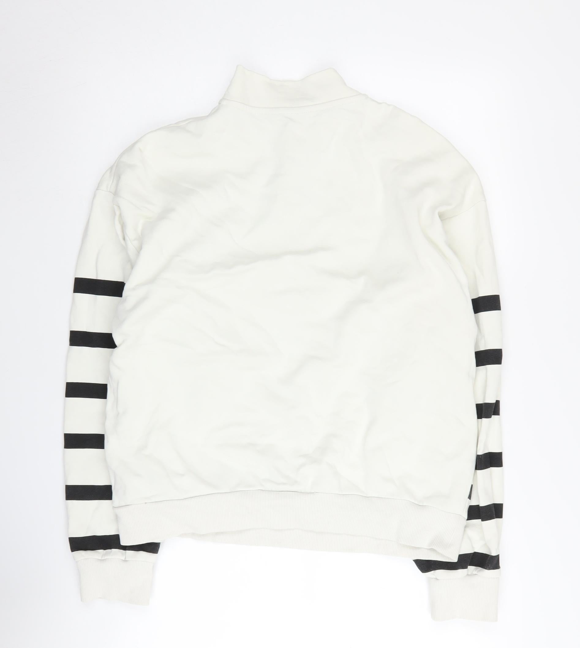 Elevate your casual wear with this stylish ASOS Design women's pullover sweatshirt. Crafted from 100% cotton, it promises ultimate comfort and breathability for all seasons. The ivory hue adorned with striking black stripes gives a classic yet trendy look, making it a versatile addition to your wardrobe. The high neckline and half-zip feature add a touch of sophistication, while ensuring a snug fit. Designed in a regular fit, this sweatshirt offers both comfort and a stylish silhouette. The machine-washable fabric ensures easy care, perfect for everyday wear. Ideal for casual outings, the long sleeves make it a go-to choice for cooler days. Embrace both comfort and style, whether you're heading to a coffee date or a casual day out. Upgrade your collection with this chic yet cozy piece, offering unmatchable versatility and timeless style.