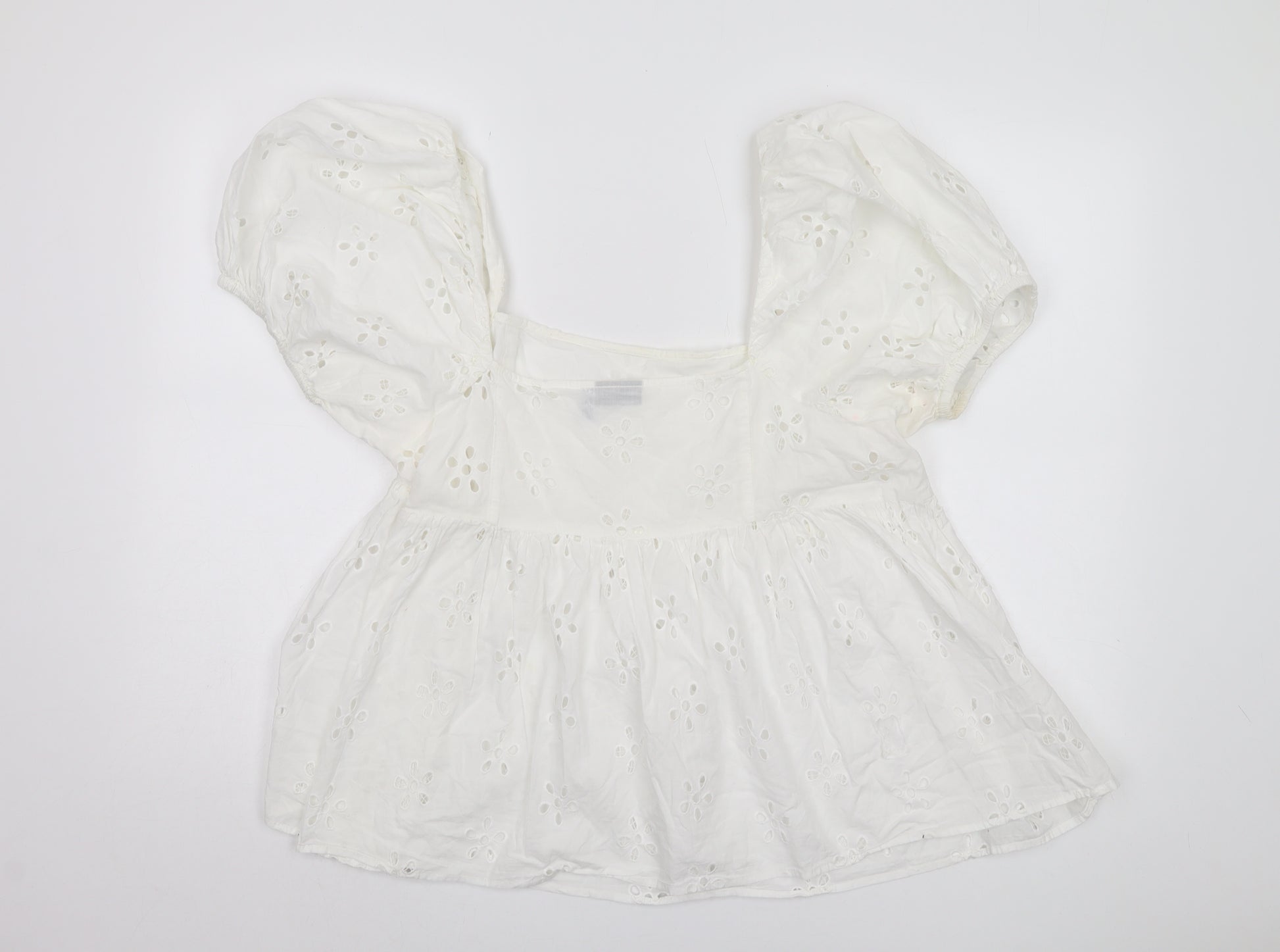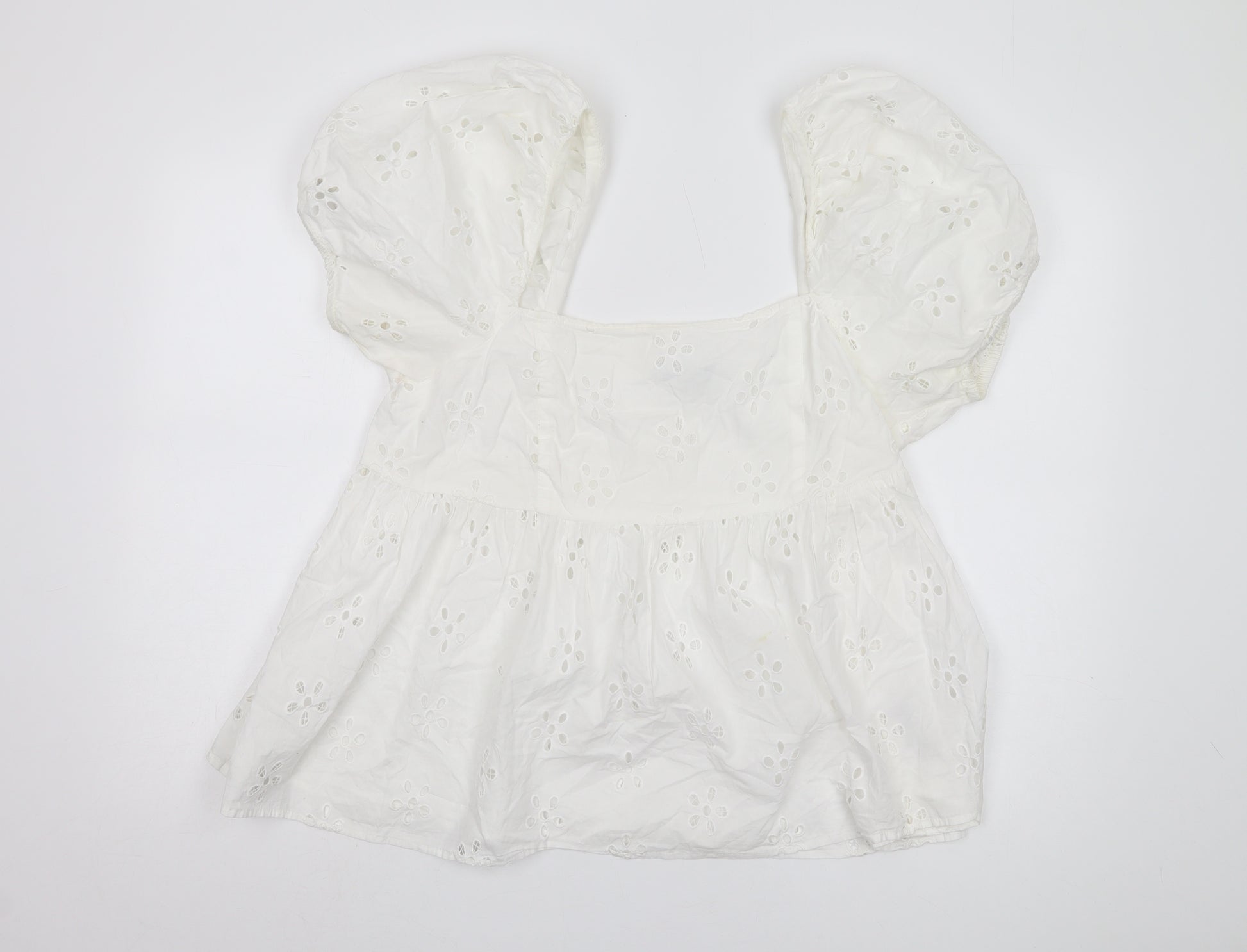 Elevate your summer wardrobe with this elegant ASOS DESIGN white camisole blouse. Crafted from 100% cotton, this blouse offers the perfect combination of breathable comfort and effortless style. Its short puff sleeves and square neckline bring a touch of romance, making it an ideal choice for casual outings or leisurely strolls. The floral pattern adds a hint of femininity, ensuring you stand out with understated elegance. Despite being pre-owned, this blouse is in excellent condition, free from any visible defects. Suitable for machine washing, it promises easy garment care, fitting seamlessly into your everyday routine. Whether paired with jeans or a skirt, this blouse offers a versatile addition to your collection, perfect for warm summer days. Don't miss the opportunity to own this chic ASOS DESIGN piece, available at an affordable price.