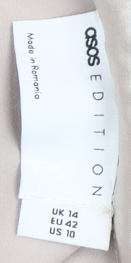 Embrace elegance with the ASOS Edition Women's Beige Satin Wrap Dress. This stunning midi dress, perfect for party or cocktail occasions, combines a classic collared neckline with long sleeves for a sophisticated look. Crafted from luxurious satin fabric, the dress offers a smooth and glossy finish, enhancing its beige tone. Designed for the modern woman, this dress features a comfortable regular size fit, complete with an easy button closure. The material blend of polyester and elastane ensures flexibility, allowing you to move with ease while maintaining a stylish silhouette. The wrap style creates a flattering drape, accented with button details, making this dress a timeless addition to your wardrobe. Ideal for both spring and summer seasons, its lined interior enhances comfort, ensuring you stay cool and confident. This chic dress is new with tags, promising pristine condition. Whether attending a special event or an elegant evening out, this ASOS Edition wrap dress will keep you looking effortlessly refined.
