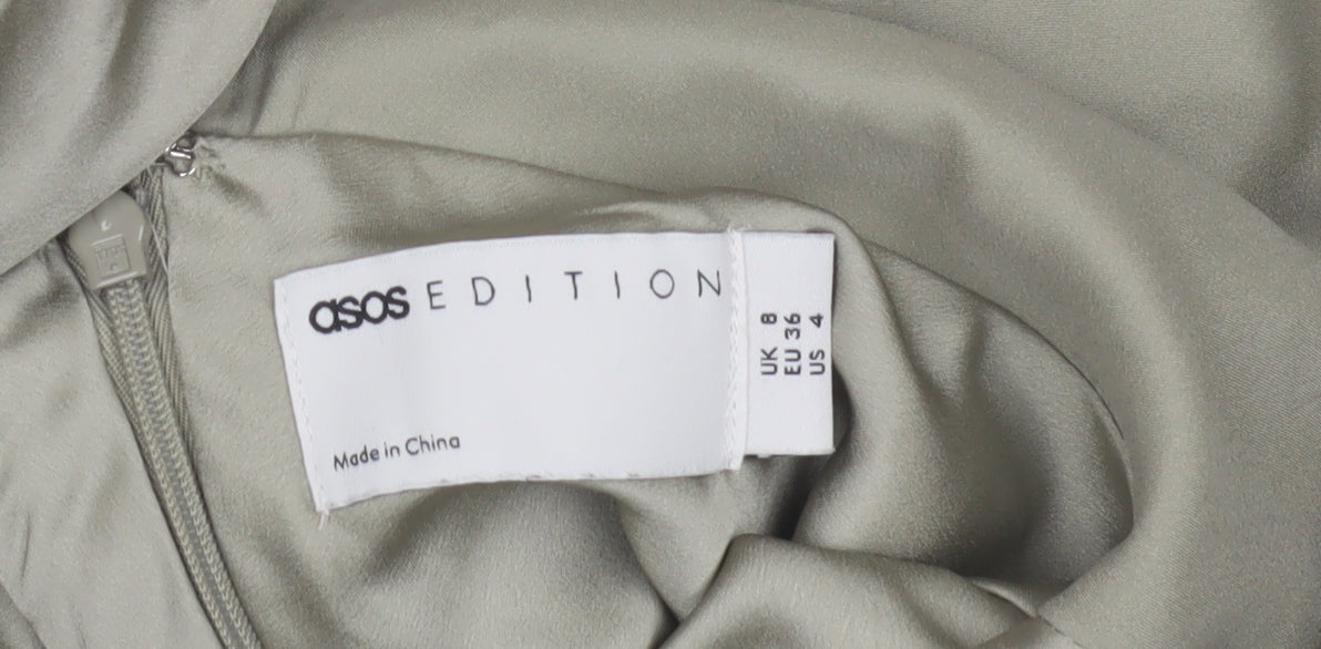 Step out in style with this elegant ASOS EDITION sleeveless dress, perfect for making a statement on any occasion. Crafted in luxurious silk, this grey dress offers a sleek and sophisticated appearance, making it a timeless addition to your wardrobe. The minimalist design features a zip closure for a seamless look, ensuring comfort and ease when worn. Designed for women in size 8, this regular fit dress is perfect for those seeking a refined and elegant style. Its understated charm is complemented by the high-quality silk material, providing a luxurious feel and finish. Although minor surface marks are visible, the dress remains in very good condition, offering excellent value for a chic wardrobe staple. Whether you're attending a formal event or a special evening out, this ASOS EDITION dress is sure to impress with its refined simplicity and timeless appeal. Make it yours today!