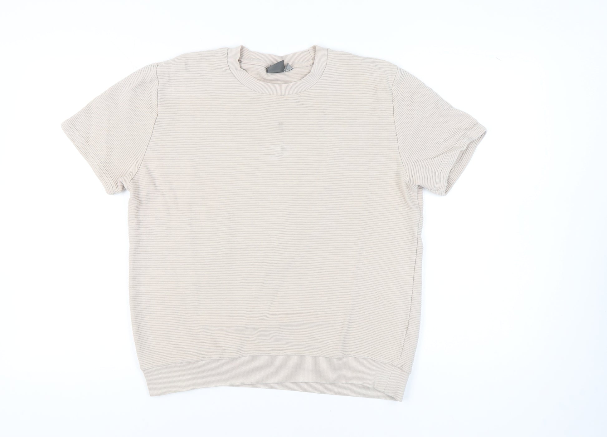 Elevate your casual wardrobe with this stylish ASOS Men’s T-shirt. Designed in a versatile beige with subtle stripes, this t-shirt is perfect for any occasion, whether you're heading out for a casual day or lounging at home. Made from a comfortable blend of cotton and elastane, it provides a soft feel against the skin with slight stretch for ease of movement. The crew neck and short sleeves offer a classic look while ensuring your comfort during warmer seasons or layered under a jacket in cooler weather. Constructed from durable materials, it ensures long-lasting wear and retains its quality even after multiple washes. This staple piece is machine washable, making it easy to care for. Whether paired with jeans or shorts, this T-shirt adds a touch of understated elegance to your apparel selection. Update your fashion ensemble with this must-have, year-round essential.