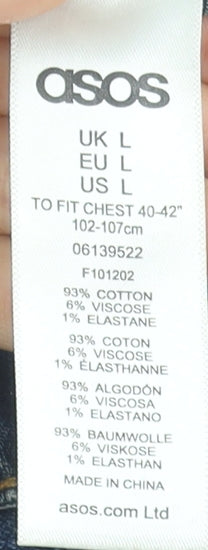 Upgrade your casual outerwear with this classic ASOS men’s blue denim jacket, a versatile essential perfect for layering through the seasons. Crafted from a quality cotton blend containing 93% cotton, 6% viscose, and 1% elastane, this jacket offers both durability and comfort with a slight stretch for ease of movement. Designed in a modern regular fit and featuring a traditional spread collar, front button fastening, and two chest button pockets, it retains all the timeless elements of denim style while incorporating subtle contemporary updates. The rich blue wash, slightly faded with natural wear, delivers a relaxed and authentic look that pairs effortlessly with your everyday wardrobe – ideal with jeans for a double-denim statement or chinos for smart-casual refinement. Functional side pockets add practicality, while the sturdy denim fabric ensures this piece will age beautifully over time. This jacket’s mid-weight cotton construction makes it suitable for both autumn and spring wear, providing just the right balance of warmth and breathability. As a staple layering piece, it embodies ASOS’s signature blend of affordable style and confident design. Although used, this jacket remains in very good condition, showing only minor natural wear consistent with careful use and retaining all buttons and stitching integrity. Perfect for casual outings, travel, or weekend wear, it delivers comfort, durability, and effortless versatility in one iconic piece. Machine washable for easy care, this ASOS denim jacket is a must-have addition to any men’s wardrobe looking to achieve a laid-back yet polished aesthetic without compromise on quality or comfort. Embrace the enduring appeal of denim – the jacket that never goes out of style.