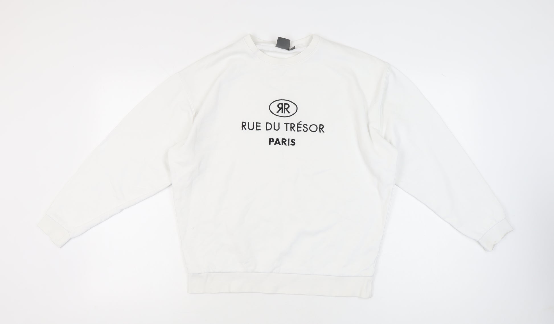 Step up your casual wardrobe with this stylish ASOS men’s logo sweatshirt in crisp white. Designed in a comfortable XS size to fit a 34–36 inch chest, this sweatshirt is perfect for those who prefer a modern, regular fit. The pullover design with long sleeves and a classic crew neckline makes it an essential layering piece that works well year-round. Crafted from 100% cotton for softness and breathability, it offers lightweight comfort while ensuring durability for everyday wear.The standout feature of this sweatshirt is the bold black 'Rue du Trésor Paris' logo printed across the chest, giving it a contemporary urban feel and making it ideal for casual streetwear. The crisp contrast of white fabric against the black logo design delivers a clean yet fashionable look, perfect for pairing with jeans, joggers or shorts for a versatile outfit. The soft jersey fabric ensures comfort, while ribbed cuffs and hem provide a structured finishing touch.Designed with all-seasons wear in mind, this sweatshirt is both practical and stylish. Whether you’re layering it under a jacket in colder months or throwing it on for a relaxed spring evening, it is versatile enough to match different occasions. With its lightweight cotton build, it ensures breathability, making it suitable for lounging or day-to-day activities.Despite being pre-owned, this sweatshirt remains in very good condition, with only a slight mark on the sleeve that does not detract from its overall appeal. Its timeless design and neutral colourway make it a reliable go-to piece in any wardrobe. Easy to care for, it is machine washable for convenience.Whether you want to refresh your casual styling with a touch of Parisian flair or need a versatile staple for your collection, this ASOS sweatshirt is a great option. Affordable, stylish, and easy to wear, it combines comfort with understated branding that makes it a must-have.Don’t miss the chance to make this ASOS white Paris logo sweatshirt part of your rotation today!