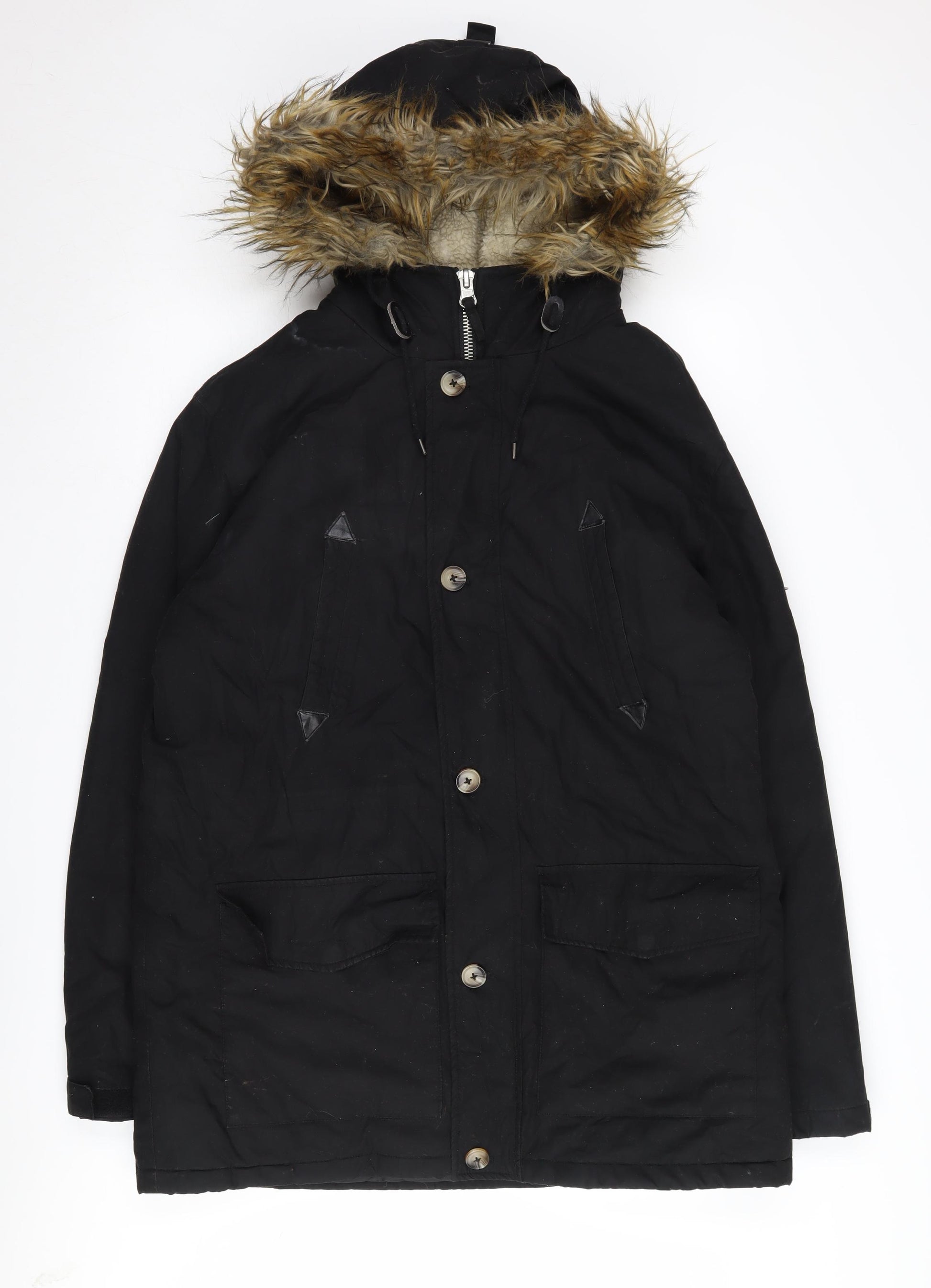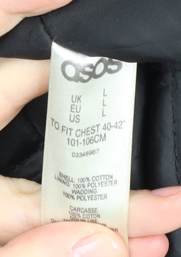 Stay warm and fashionable with this ASOS men's parka jacket. Designed for ultimate comfort and style, this black parka is tailored for those who appreciate both practicality and aesthetics. Made from 100% cotton, the jacket ensures breathability while maintaining warmth, ideal for the colder winter months. The polyester lining adds an extra layer of insulation, ensuring you stay cosy despite the chill. Perfectly complementing the sleek black exterior is the faux fur hood trim, delivering a stylish touch that promises to turn heads.The jacket features a dependable button and zip closure, ensuring maximum security and warmth during wear. Its hooded design not only adds to its stylish appearance but also provides added protection against windy conditions. With a regular fit that suits size L, it’s crafted to offer a comfortable and flattering silhouette for any man. This parka, complete with practical pockets, serves as an essential piece for anyone facing the elements.Embrace the versatility of this casual jacket during your daily errands or casual outings. Its classic design and neutral colour make it a seamless addition to any wardrobe, pairing effortlessly with a range of outfits and styles. The ASOS quality assurance shines through, ensuring that although it shows minor signs of wear, it's still in very good condition.Whether you’re exploring the city or venturing into the great outdoors, this parka jacket is your ultimate companion for warmth and style. Don’t miss out on the opportunity to add this versatile and fashionable piece to your collection.