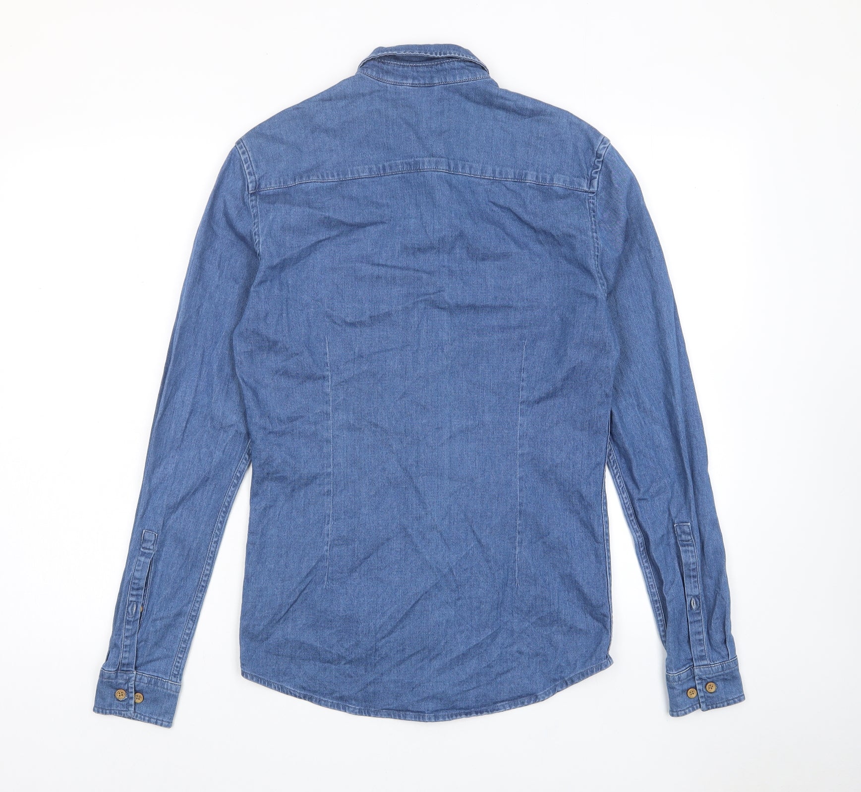 Mens Blue Cotton Button-Up Size S Collared Button