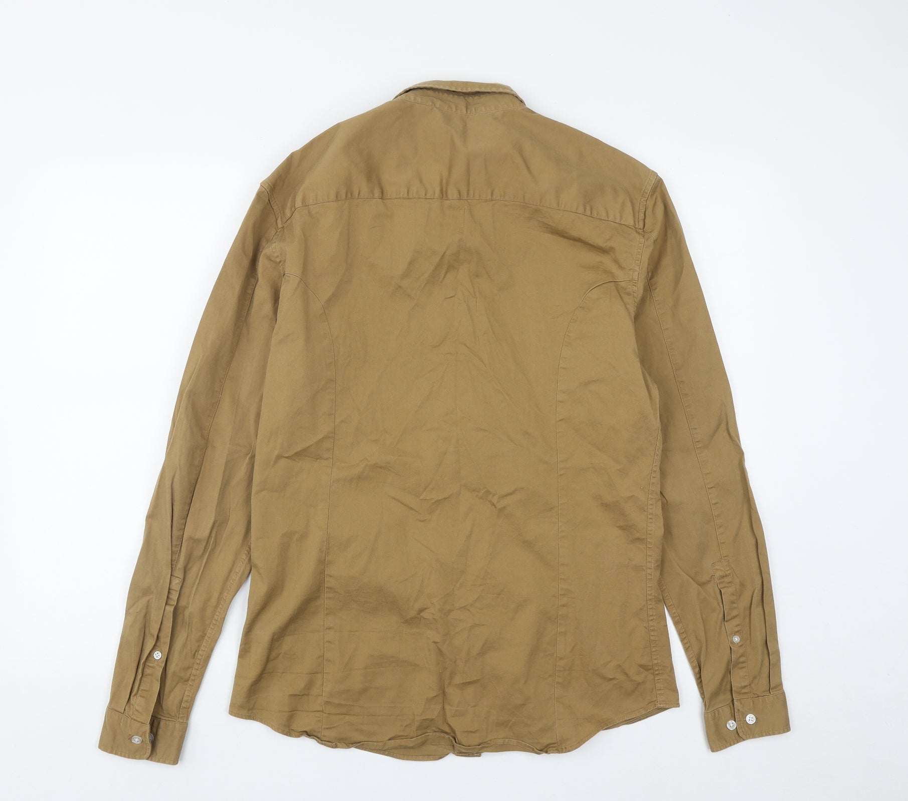 Primark Mens Brown Cotton Button-Up Size L Collared Button