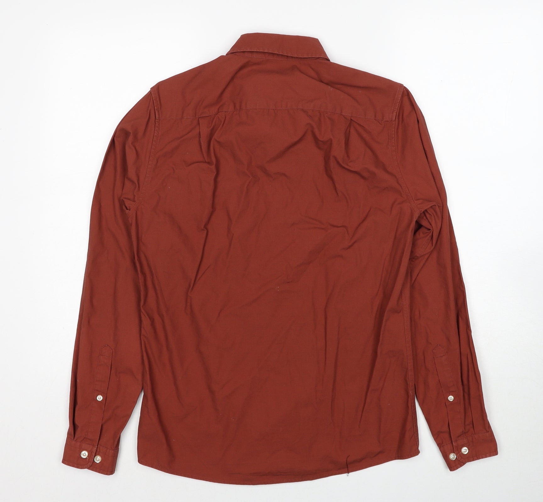 Mens Brown Cotton Button-Up Size XS Collared Button