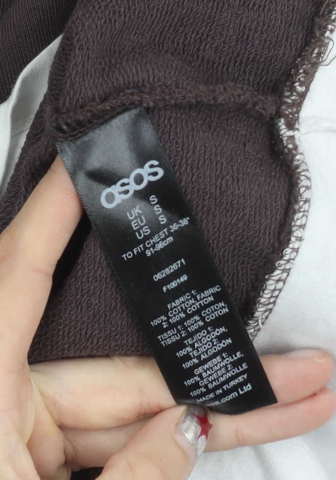This ASOS men's pullover hoodie in size Small is a versatile wardrobe essential that merges comfort with effortless everyday style. Crafted from 100% cotton, it offers a breathable and soft feel against the skin, making it ideal for both relaxed layering and casual wear throughout multiple seasons. The regular fit ensures it sits comfortably on the body without feeling restricting, while still delivering a laid-back silhouette. Designed in a rich brown shade, this hoodie provides understated versatility, pairing seamlessly with denim jeans, joggers, or chinos for an easy off-duty look.The hoodie comes with a drawstring closure for an adjustable fit around the hood, along with ribbed cuffs and hem that enhance durability and shape retention. A practical kangaroo pocket to the front adds functionality, allowing you to keep hands warm or store small essentials. Its long-sleeve design makes it especially suitable for autumn and winter months but remains lightweight enough for spring wear. With a clean, minimal aesthetic and no busy patterns, the hoodie delivers a timeless appearance that can be styled up with a layered jacket or worn solo for simple comfort. Perfect for everyday outings, lounging, or casual social occasions, it is a reliable option for those seeking both comfort and style. The cotton fabric construction also ensures easy care with simple machine washing, adding to its everyday practicality.Condition is set at 'Very Good' with only light signs of wear, showing no major flaws, tears, or stains, ensuring plenty of life left in the garment. Priced affordably, this piece offers an attractive balance of quality and style at great value compared to similar listings across online resale platforms.Whether you’re refreshing your wardrobe staples or searching for a versatile layering option, this ASOS hoodie in brown presents an effortlessly wearable option that will quickly become a go-to favourite. Its blend of style, comfort, and utility makes it a smart investment for any casual wardrobe.