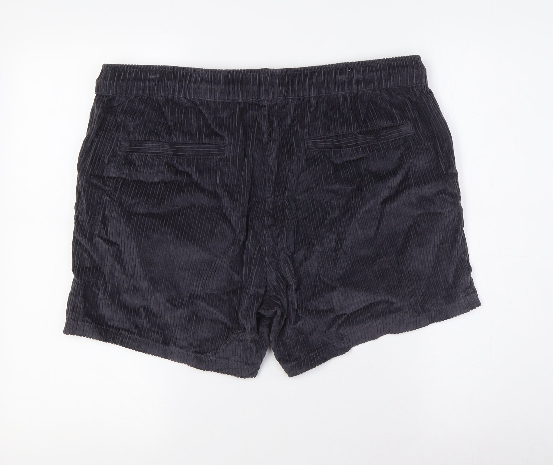 Mens Grey Cotton Bermuda Shorts Size 38 in Regular Tie - Elasticated Waist