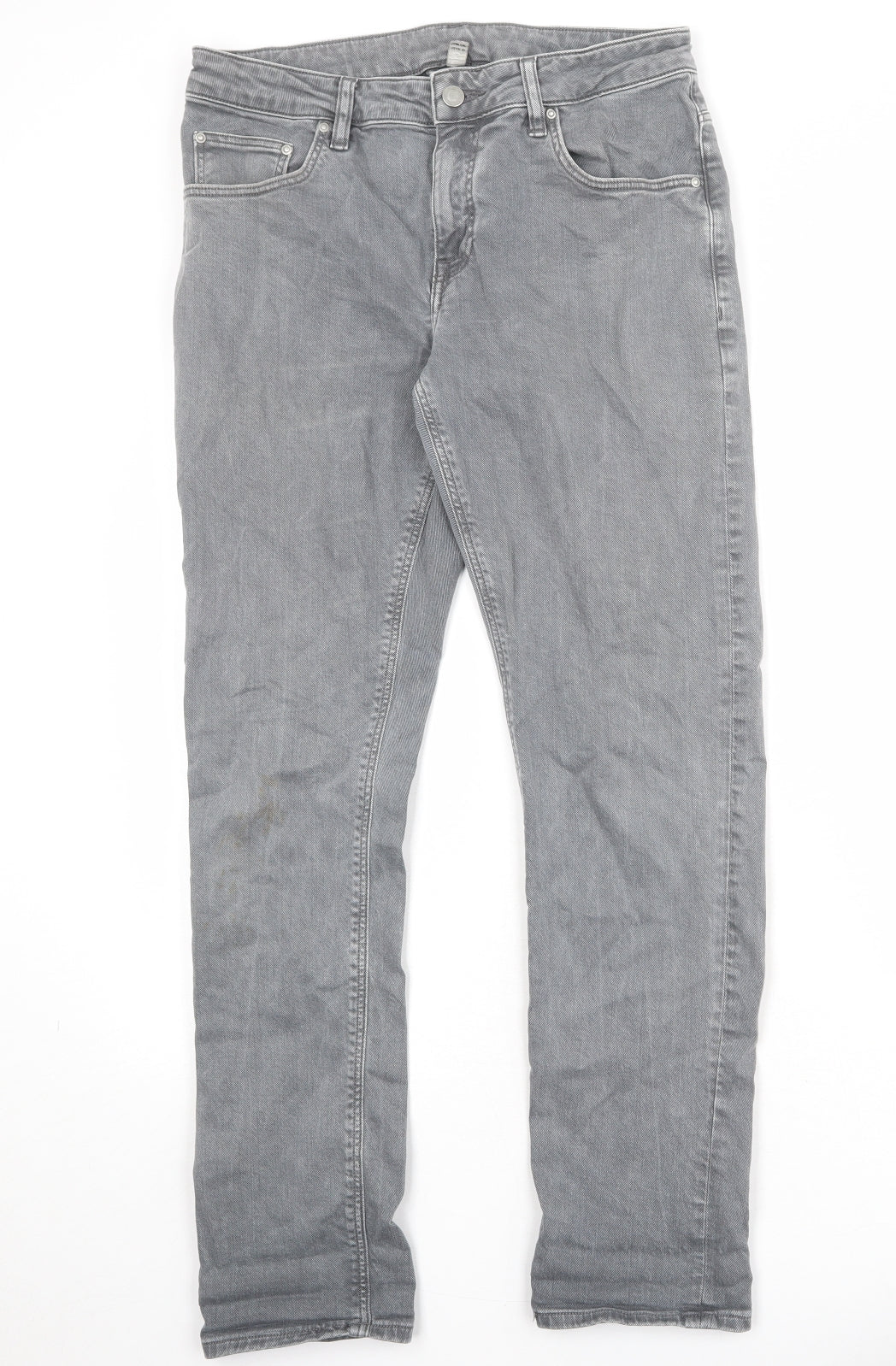 Mens Grey Cotton Straight Jeans Size 32 in Regular Zip