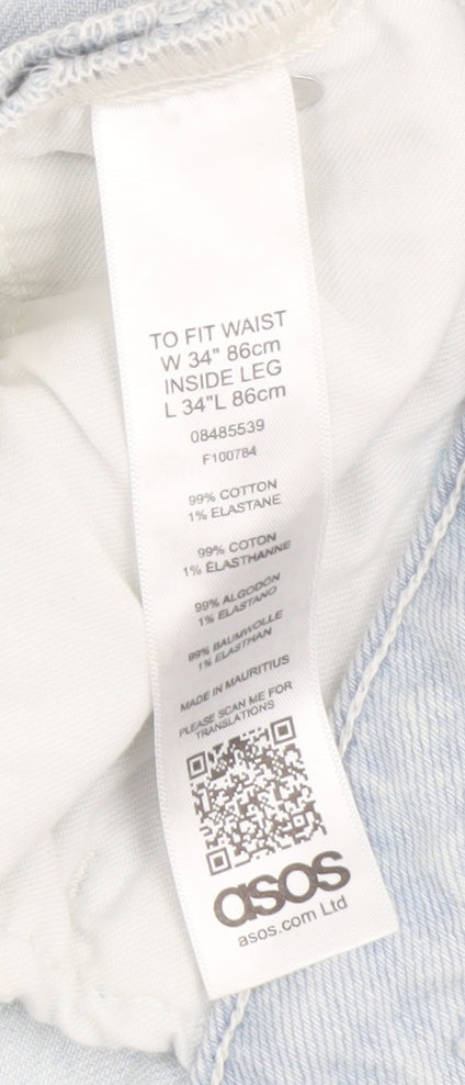 Elevate your casual wardrobe with these stylish ASOS men's jeans, designed for those who appreciate the perfect blend of comfort and fashion. Crafted from durable denim, these light wash jeans feature a classic straight style that suits any occasion, from laid-back weekends to relaxed office wear. With a regular fit that flatters all body types, these jeans boast a thoughtful construction, offering a 34-inch waist and an 86 cm inside leg, ensuring maximum comfort throughout the day.Made primarily of cotton with a touch of elastane, these jeans provide the flexibility you need for daily activities, ensuring a snug yet non-restrictive fit. The light fabric wash and button closure add a touch of sophistication, while the 5-pocket design offers both functionality and style, making these jeans a versatile addition to your collection.Ideal for the spring and summer seasons, these jeans seamlessly transition from season to season. Their new condition, complete with tags, guarantees a fresh feel and a look that's always on-trend. Perfect for pairing with any top, these jeans are a must-have for anyone seeking a reliable and fashionable wardrobe staple.
