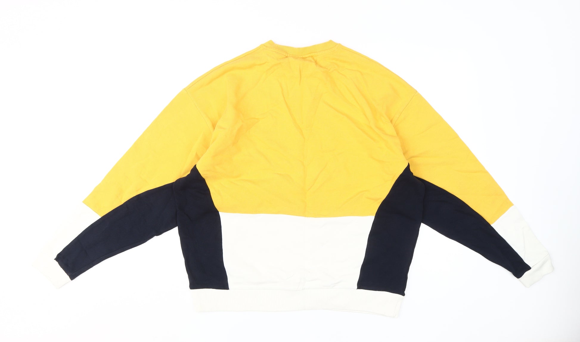 Step out in style with this ASOS men's multicoloured sweatshirt, perfect for adding a vibrant touch to your wardrobe. Designed for comfort and fashion, this pullover is crafted from soft jersey fabric, a blend of durable 100% cotton with trims of 98% cotton and 2% elastane, offering a flexible and snug fit. Its regular fit and crew neckline provide a classic look, while the long sleeves ensure warmth during the cooler months of autumn and spring.This lightweight sweatshirt is designed for those who appreciate both style and comfort in their everyday wear. The multicoloured pattern, predominantly featuring yellow, black, and white, adds a pop of colour to your outfit, making it a distinctive choice for casual outings, day trips, or even relaxed work environments. Its relaxed charm will undoubtedly make it a staple piece in any modern man's collection.Easy to care for, this sweatshirt is machine washable, ensuring you look your best with minimal effort. Whether you're pairing it with jeans for a laid-back look or with chinos for a more polished appearance, this ASOS sweatshirt is versatile enough to match any style. Update your wardrobe today and embrace the perfect blend of comfort, style, and functionality with this eye-catching ASOS crew neck sweatshirt.