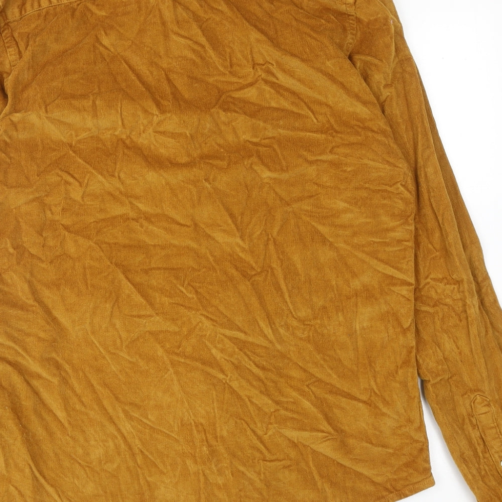 Mens Yellow Cotton Button-Up Size L Collared Button