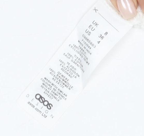Elevate your wardrobe with this charming white skirt from ASOS, designed for women who appreciate style and comfort. Crafted entirely from breathable cotton, this piece ensures a cool and comfortable wear, perfect for spring and summer outings. The skirt features an elastic waist for easy fit, adorned with delicate lace accents that add a touch of feminine elegance. The fabric is lightweight, making it ideal for balmy days while the intricate lace detailing enhances its visual appeal. Whether you're off to a casual brunch or a day by the beach, this versatile skirt offers effortless style. With its classic white hue, it pairs seamlessly with a variety of tops, from vibrant blouses to understated tees. Although in excellent condition without original sales tags, the skirt shows no visible signs of wear, ensuring you a chic look for outings. Machine washable for convenient care, this regular size 8 piece is a sophisticated blend of comfort and timeless style. Don't miss the chance to add this exquisite skirt to your collection.