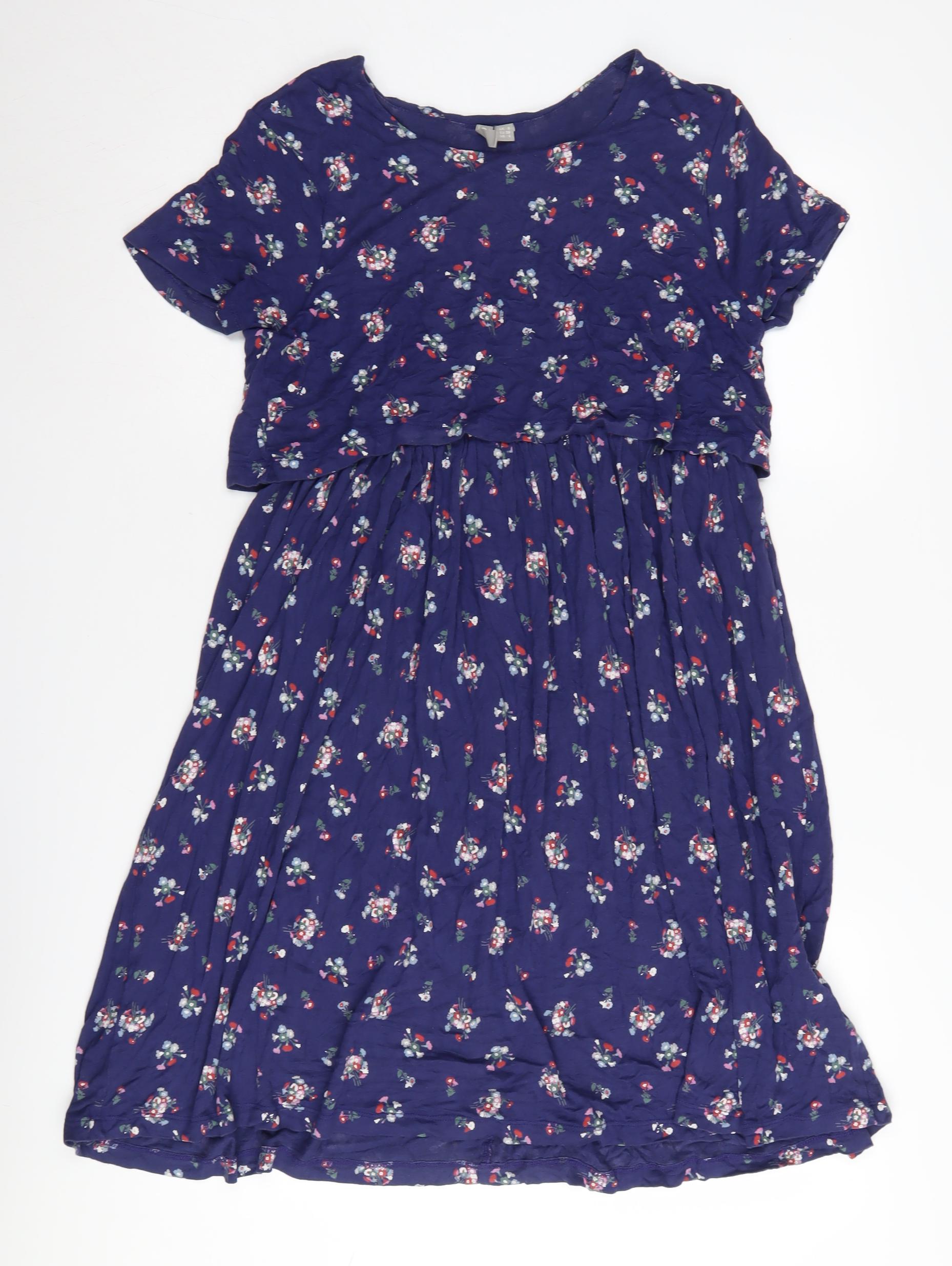 Marks and Spencer Womens Blue Floral Viscose A-Line Size 8 V-Neck Button