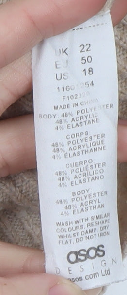 This ASOS Women's Pullover Jumper in soft beige offers the perfect balance of comfort and style for cooler seasons. Crafted from a premium blend of polyester, acrylic and elastane, this jumper provides a cosy knitted feel with just the right amount of stretch for a comfortable, relaxed fit. The classic crew neckline and long sleeves make it a timeless wardrobe staple that can be easily dressed up or down. Its tight-knit texture and ribbed cuffs and hemline add subtle detailing, ensuring it maintains a flattering silhouette while keeping you warm throughout autumn and winter.Designed by ASOS, this jumper embodies effortless modern style suitable for a range of casual occasions. The light neutral tone complements a variety of outfits — ideal for pairing with jeans, trousers or skirts. The lightweight and breathable knit offers comfort for everyday wear, while the slight stretch allows free movement without losing shape. Perfect for layering under coats or jackets during colder months, it is versatile enough for both home comfort and outdoor activities.In excellent used condition with minimal signs of wear, this jumper remains soft, clean and ready to wear. Machine washable for easy care, it delivers both practicality and simple sophistication. Whether you’re looking to refresh your winter wardrobe or add a neutral essential piece, this ASOS jumper is a must-have for any collection. With its combination of comfort, quality materials and relaxed fit, it promises to become your go-to choice for stylish warmth throughout the season.