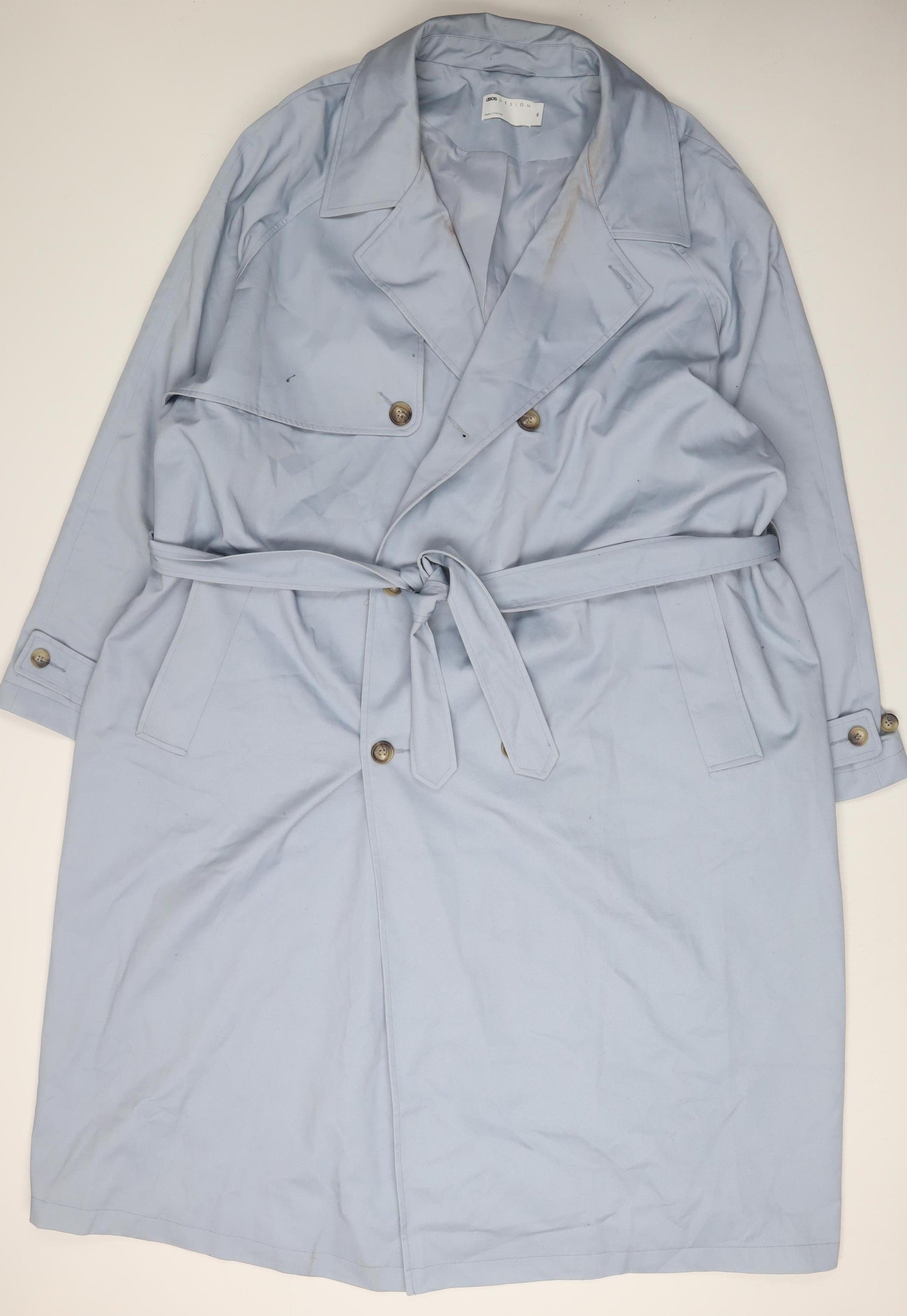 Discover the perfect blend of style and comfort with this ASOS women's trench coat in a sophisticated blue shade. Crafted for a confident woman, this long trench coat is a versatile wardrobe staple that can be worn in autumn and spring, offering a chic transition through seasons. Made from a durable polyester and cotton blend, this coat ensures resilience while providing a stylish silhouette. The belted feature enhances your figure, adding a touch of femininity to your look. Keeping comfort in mind, the lining is made of polyester for a smooth, comfortable feel against the skin. Tailored in a regular fit, it features long sleeves and a classic button closure, making it ideal for casual occasions. The coat’s simplicity is accentuated with button accents, while maintaining a timeless appeal without any pattern, ensuring it complements various outfits effortlessly. Designed for the contemporary woman, this trench coat caters to all your style needs, from workwear to weekend outings. Enhance your wardrobe with this stylish coat and make a fashion statement wherever you go. Shop now and bring home a versatile piece that elevates your style quotient significantly.