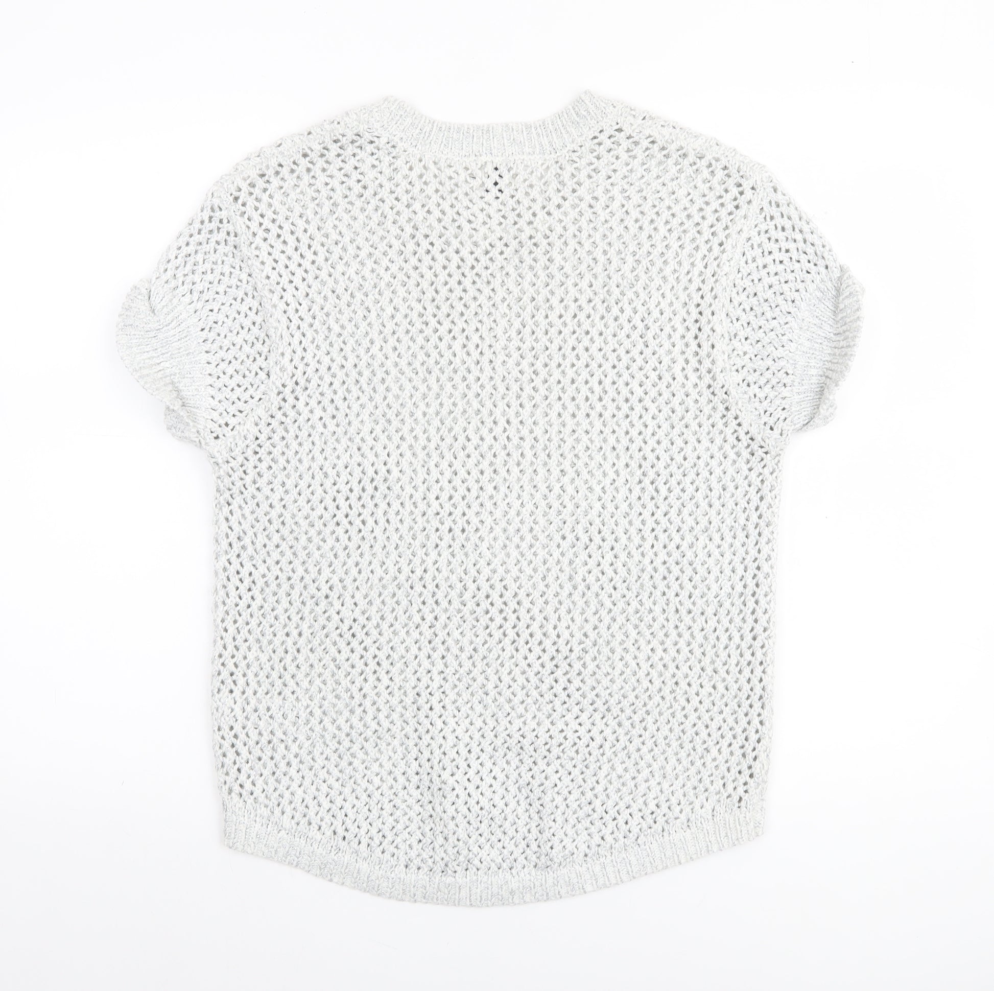 Women’s White Open-Knit Short Sleeve Jumper Size 10