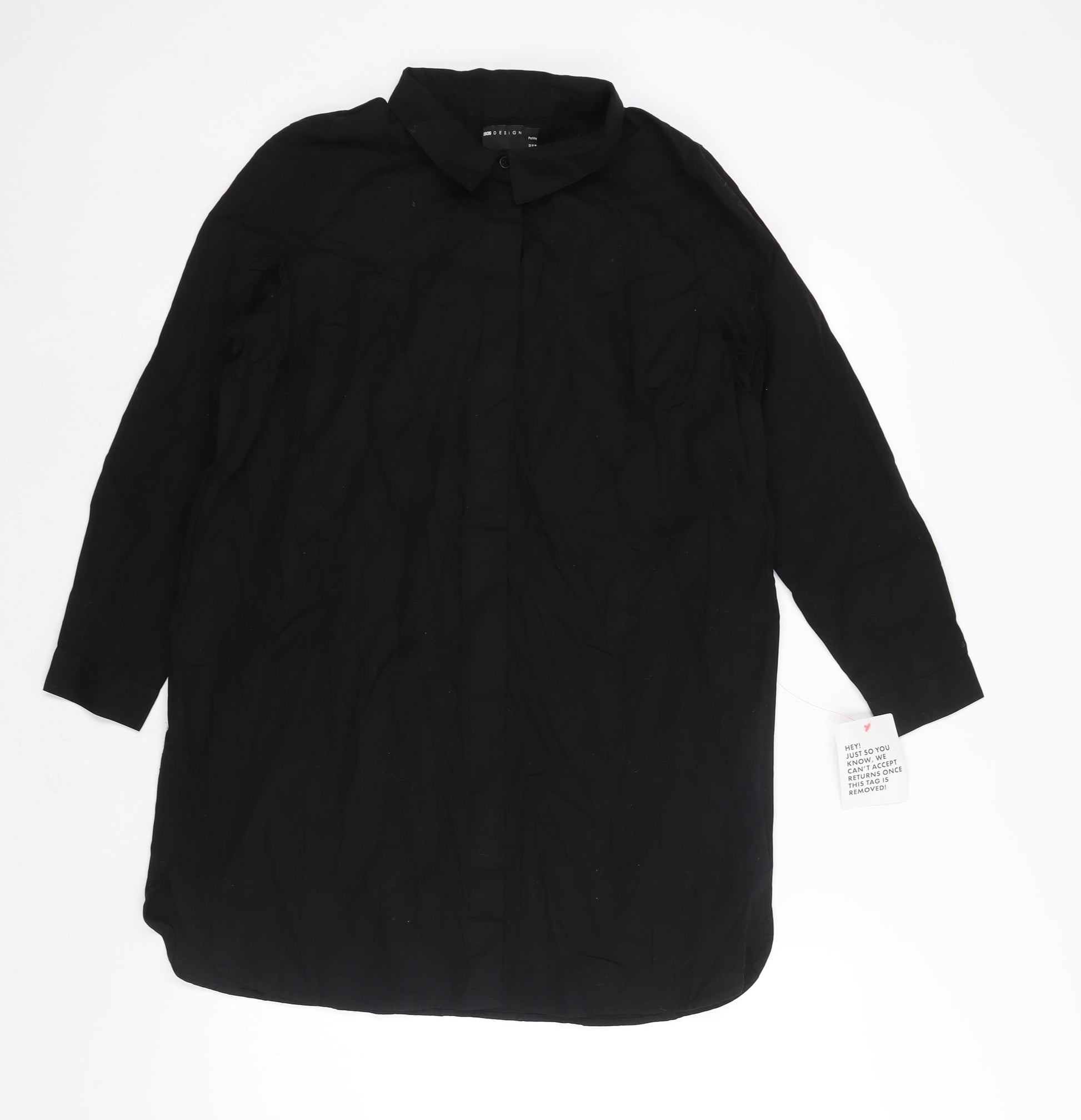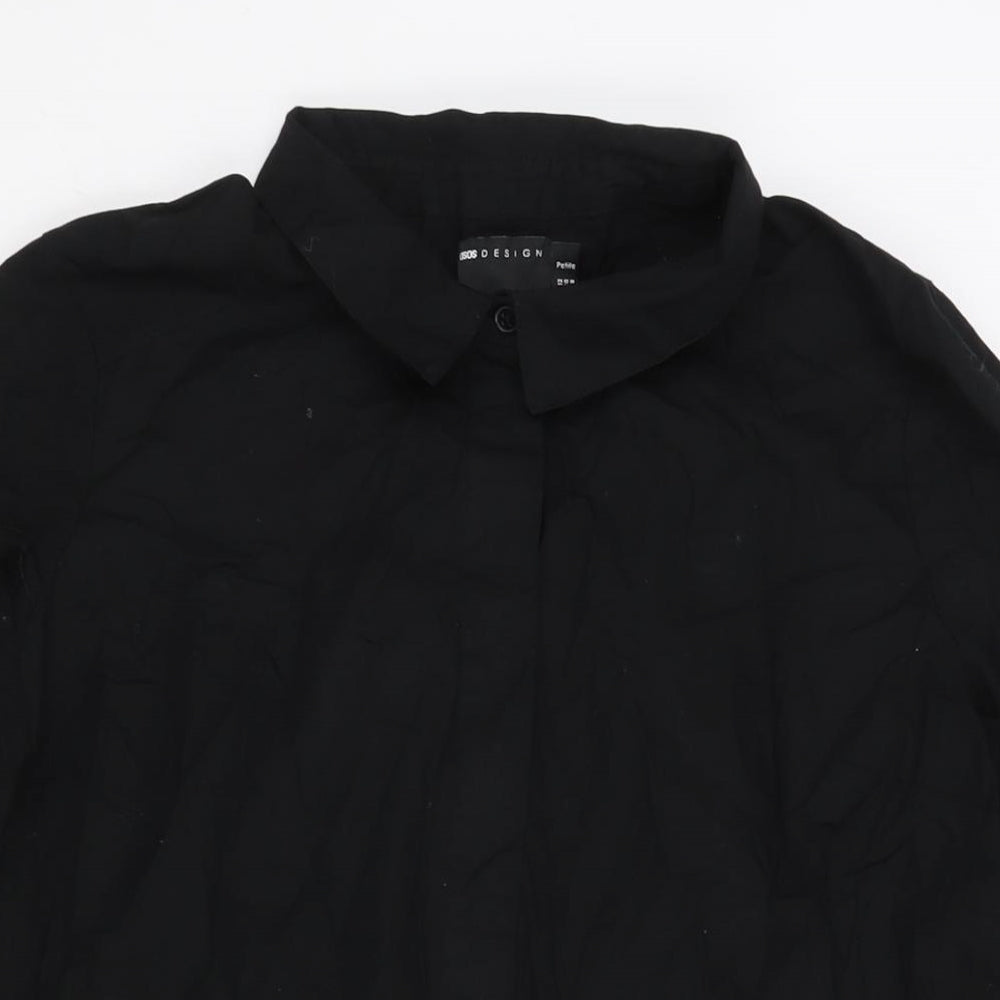 Womens Black Cotton Shirt Dress Size 12 Collared Button
