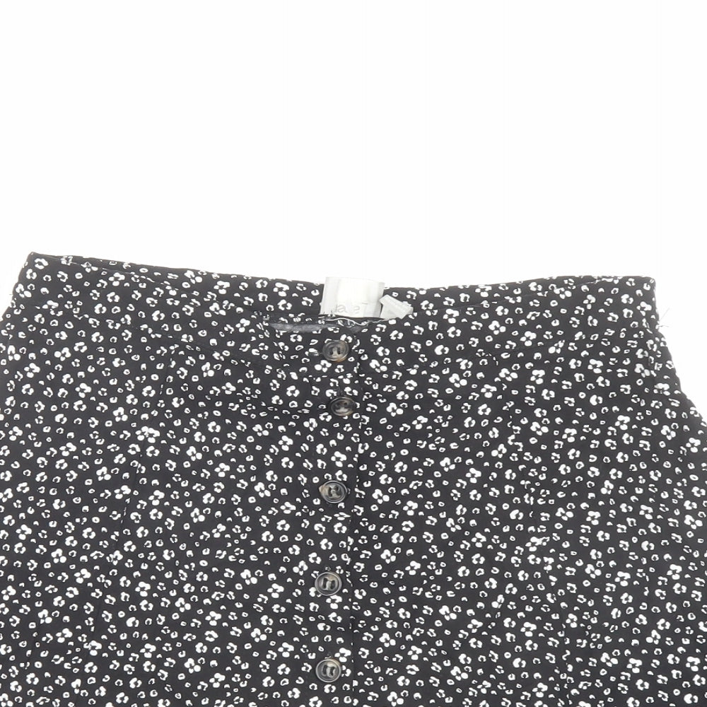 Womens Black Floral Viscose Mini Skirt Size 12 Button